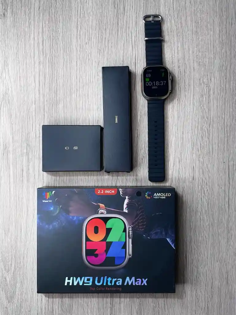 Excelente reloj inteligente HW9 ultra max, viene con todas las funciones de un Apple Watch original, contiene las siguientes caracteristicas: ✅Funcion Bluetooth ✅Reproductor MP3 ✅Sensor Ritmo Cardiaco ✅Contestar y Realizar Llamadas ✅Cargador Magnético Tipo C ✅Función Deportes ✅Cámara Remota por Bluetooth ✅Alarma-Función Anti-perdida ✅Calendario ✅Contador de Pasos ✅Notificación Redes Sociales ✅Asistente de google