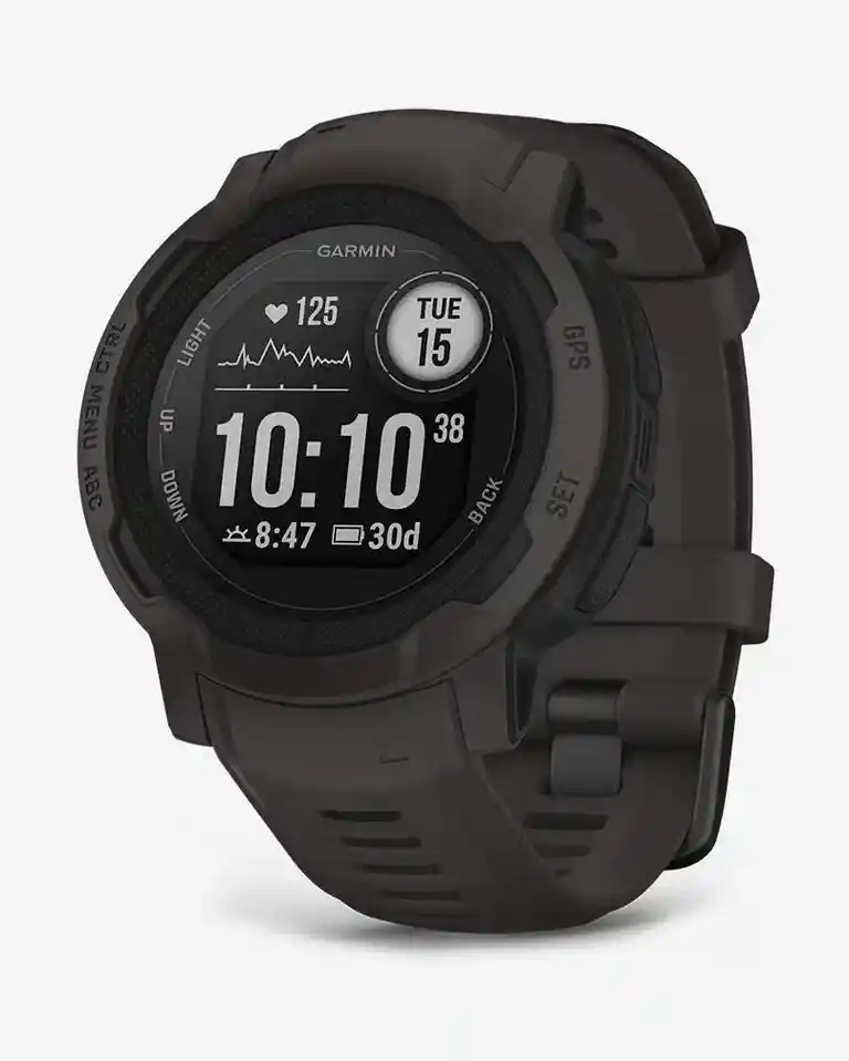 El Garmin Instinct 2 Grafito es un reloj inteligente resistente diseñado para actividades al aire libre, con pantalla monocromática transflectiva de alto contraste visible bajo luz solar, carcasa de polímero reforzado con fibra y resistencia al agua de 10 ATM. Integra GPS multibanda, GLONASS y Galileo para navegación precisa, sensores de frecuencia cardiaca, pulsioxímetro, monitor de estrés, seguimiento avanzado del sueño y métricas de entrenamiento. Ofrece compatibilidad con notificaciones inteligentes, funciones de seguridad como detección de incidentes y LiveTrack, amplia autonomía de hasta 28 días en modo smartwatch y más de 30 horas en modo GPS, además de perfiles deportivos preinstalados y conectividad con la app Garmin Connect. Este modelo incluye únicamente el idioma inglés.