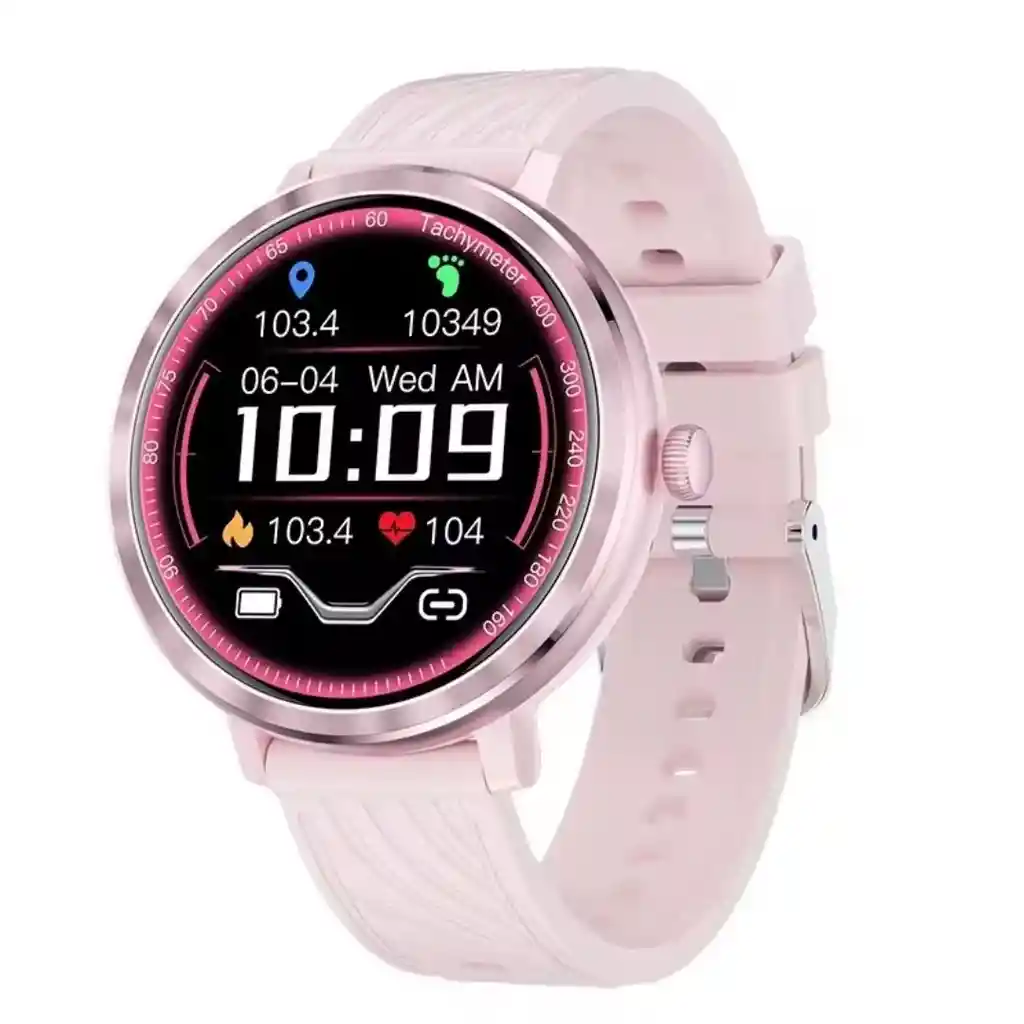 Reloj Inteligente NX27 Mujer Diseño elegante: el reloj inteligente NX27 cuenta con un moderno diseño redondo con una pantalla táctil AMOLED de 1,19 pulgadas, lo que lo convierte en un accesorio perfecto para las mujeres que valoran el estilo y la funcionalidad. Seguimiento avanzado de la actividad física: este reloj inteligente ofrece una variedad de funciones, que incluyen un rastreador de frecuencia cardíaca, rastreador de actividad, rastreador de calorías y rastreador multideporte, lo que permite a los usuarios monitorear su progreso físico y mantenerse motivados. Resistente al agua y duradero: con una clasificación de resistencia al agua IP68, el NX27 puede soportar agua y polvo, lo que lo hace perfecto para usuarios que realizan actividades acuáticas o trabajan en entornos hostiles. Batería de larga duración: el reloj inteligente tiene una capacidad de batería de 180 mAh, lo que proporciona hasta 4 días de duración de la batería, lo que garantiza que los usuarios puedan disfrutar de su seguimiento de actividad física y funciones inteligentes sin preocuparse por la recarga frecuente. Reloj inteligente multifuncional: el NX27 ofrece una variedad de funciones, que incluyen reloj despertador, control remoto, rastreador de sueño, recordatorio de llamadas, recordatorio de mensajes y notificaciones de redes sociales, lo que permite a los usuarios mantenerse conectados y organizados mientras viajan. Reloj inteligente NX27 Modelo Reloj inteligente NX27 2025 APLICACIÓN Fitcloudpro Tamaño de la pantalla Pantalla AMOLED de 1,19″ Batería 180 mAh Funciones Llamadas Bluetooth, frecuencia cardíaca, oxígeno en sangre, presión arterial, tiempo, podómetro, calorías, cálculo de distancia, múltiples modos deportivos, detección de sueño, recordatorio de mensajes, control de música Chip RTL8763EWE Material Caja de aleación + silicio Sistema compatible Sistema Android versión 5.0 o superior; sistema iOS versión 10.0 o superior Ver idioma Chino, inglés, alemán, ruso, español, portugués, francés, japonés, árabe, holandés, italiano, checo, griego, hebreo, indonesio, malayo, polaco, tailandés, vietnamita, finlandés, rumano, turco, croata Notificación Idiomas compatibles Chino, inglés, español, portugués, alemán, italiano, francés, ruso, japonés, polaco, vietnamita, hebreo, croata, turco, árabe, tailandés, checo, neerlandés, indio, malayo, finlandés, griego y rumano.