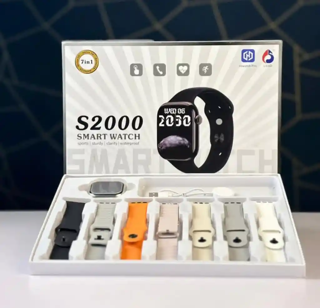 reloj inteligente, el modelo Reloj Smart Watch S2000 7 en 1 | XF30 . Las características destacadas del producto son: Monitor de frecuencia cardíaca y presión arterial : Permite llevar un control de la salud cardiovascular. Notificaciones de llamadas y mensajes : Muestra alertas de llamadas entrantes y mensajes directamente en la muñeca. Control de música y cámara desde la muñeca : Ofrece la conveniencia de manejar la reproducción de música y la cámara del teléfono desde el reloj. Modo deportivo con múltiples funciones fitness : Incluye diversas herramientas y modos para el seguimiento de actividades deportivas y de ejercicio. Pantalla táctil a color, diseño moderno y cómodo : Presenta una interfaz visual atractiva y fácil de usar, con un diseño actual y ergonómico. Batería recargable de larga duración : Asegura un uso prolongado sin necesidad de cargas frecuentes. Recibelo a Domicilio .