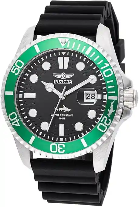 Producto Nuevo y Original. INVICTA Pro Diver Hombres 1.693 in Caja de acero inoxidable y banda de silicona Cristal de fusión de llama Resistencia al agua 328.1 ft Adecuado para surf recreativo, natación, esnórquel, vela y deportes acuáticos. No apto para buceo.