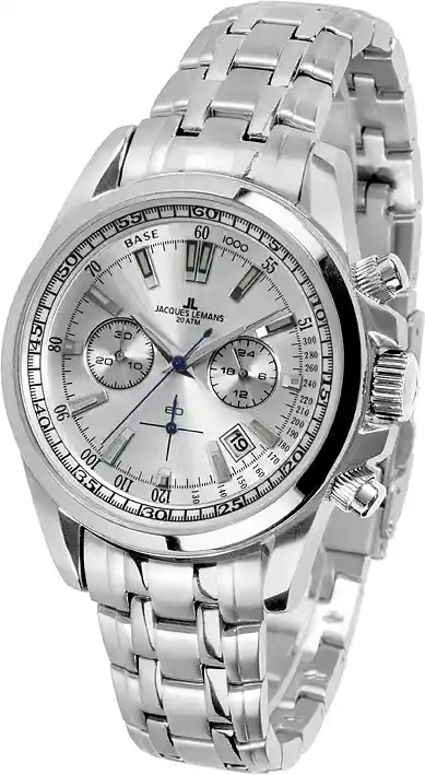 Jacques Lemans Disfrutar es el arte de vivir. Los relojes de Jacques Lemans hacen que te des cuenta de momentos únicos. Suscitan emociones y evocan una sonrisa con cada mirada en la muñeca. Género: Hombre Función: Cronógrafo Tamaño De La Caja: 44mm Material Caja: Acero Inoxidable Material Cristal: Cristal Cristex Endurecido Material Correa/Pulsera: Acero Inoxidable Sólido Color Del Pulso: Acero Inoxidable Sólido Color Tablero: Plateado Resistencia Al Agua: 20 ATM