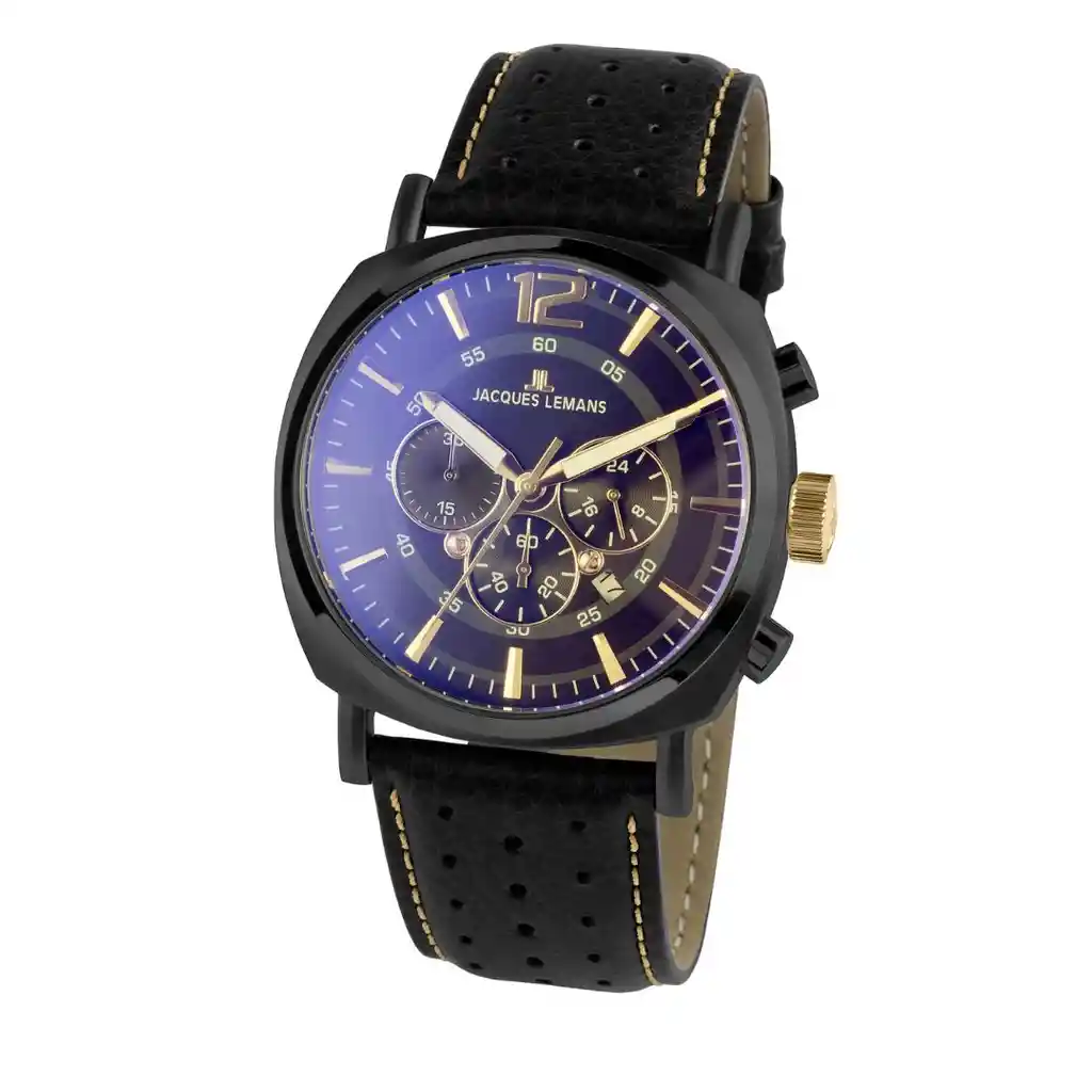 Jacques Lemans Disfrutar es el arte de vivir. Los relojes de Jacques Lemans hacen que te des cuenta de momentos únicos. Suscitan emociones y evocan una sonrisa con cada mirada en la muñeca. Género: Hombre Función: Cronógrafo Tamaño De La Caja: 46mm Material Caja: Acero Inoxidable Sólido IP-Gris Material Cristal: Cristal Cristex De Color Endurecido Material Correa/Pulsera: Correa De Cuero Color Del Pulso: Negro Color Tablero: Negro Resistencia al agua: 10 ATM