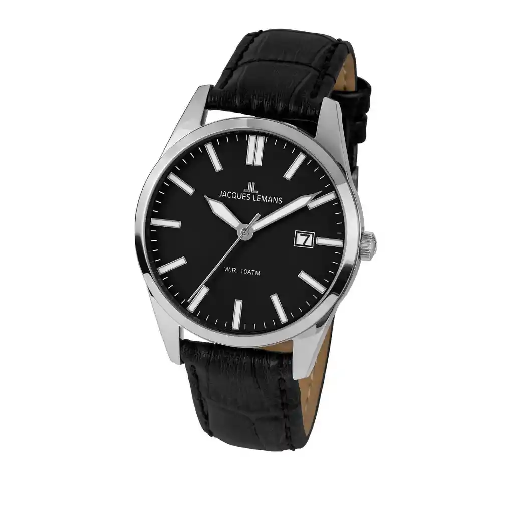 Jacques Lemans Disfrutar es el arte de vivir. Los relojes de Jacques Lemans hacen que te des cuenta de momentos únicos. Suscitan emociones y evocan una sonrisa con cada mirada en la muñeca. Género: Hombre Función: 3 Agujas Tamaño De La Caja: 42mm Material Caja: Acero Inoxidable Sólido Material Cristal: Cristal Cristex Endurecido Material Correa/Pulsera: Correa De Cuero Color Del Pulso: Negro Color Tablero: Negro Resistencia al agua: 10 AT