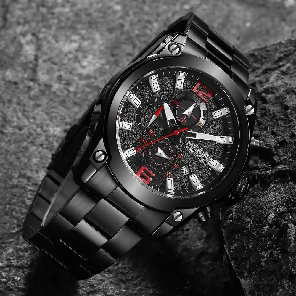 -Tipo de hora: Analoga -Calendario funcional: Si -Material del dial: Acero inoxidable -Material de la correa: stainless steel -Resistente al agua: 3 ATM -Manecillas luminosa -Clendario -peso del reloj: 120g -Ancho de banda: Aproximadamente 24mm -Longitud de la banda: Aproximadamente 240mm -Tipo: Moda y casual