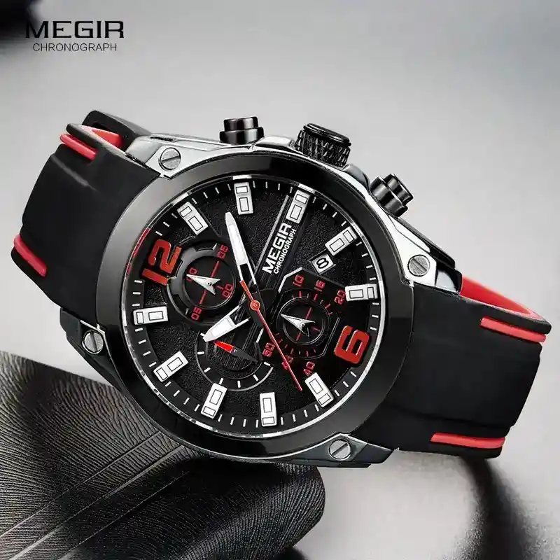 -Tipo de hora: Analoga -Calendario funcional: Si -Material del dial: Acero inoxidable -Material de la correa: Silicona -Resistente al agua: 3 ATM -Manecillas luminosa -Clendario -peso del reloj: 110g -Ancho de banda: Aproximadamente 24mm -Longitud de la banda: Aproximadamente 240mm -Tipo: Moda y casual