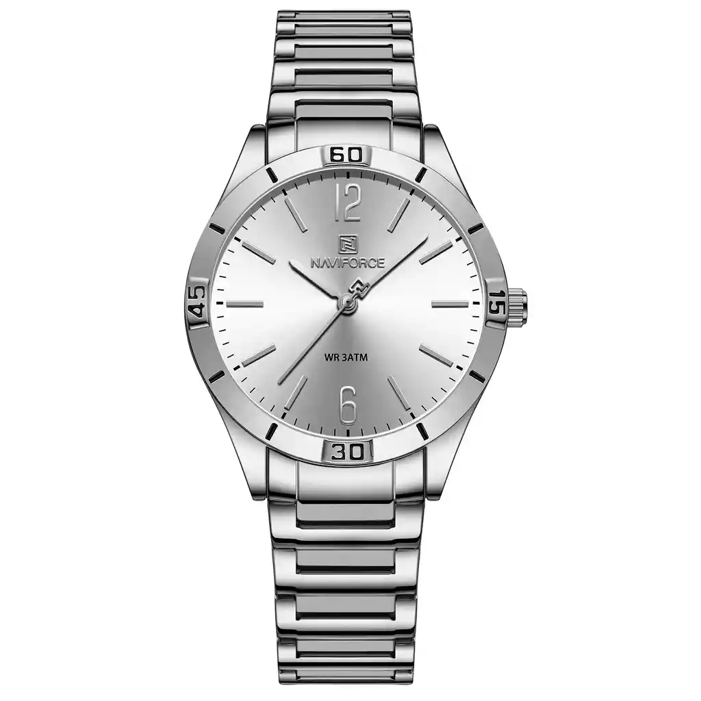 Descubre la elegancia y sofisticación de los relojes **Naviforce**, diseñados para quienes buscan estilo, calidad y funcionalidad en un solo accesorio. Con materiales de primera y un diseño innovador, este reloj no solo complementa tu look, sino que también resalta tu personalidad con un toque de lujo y distinción. Su correa elegante se adapta perfectamente a cualquier ocasión, permitiéndote lucir impecable en todo momento. Más que un simple reloj, **Naviforce** es sinónimo de prestigio y modernidad, ideal para quienes desean destacar con cada detalle. ¡Hazlo tuyo y eleva tu estilo al siguiente nivel! /// El reloj incluye su estuche original y tarjeta de garantía. /// Ficha Técnica Pantalla Análoga Resistencia al agua de 3ATM (solo exposición accidental al agua No ducha, No se puede sumergir, No usar en actividades acuáticas). Tipo de cierre: Hebilla Material de la caja: ABS Grosor de esfera: 0.87 cm Ancho correa: 1.6 cm Diámetro: 3.7 cm Material de la correa banda: Acero Inoxidable Longitud de La correa: 22.5 cm ( Ajustable ) Peso neto: 89.2g Términos de garantía: Para defectos de fábrica o solicitudes de retracto, es importante revisar el producto inmediatamente al recibirlo y antes de usarlo, ya que no aplicará garantía una vez utilizado. Se dispone de un máximo de 5 días para reportar defectos de fábrica, como piezas faltantes o rotas. En el caso de maquinaria, la garantía cubre tres meses para garantizar su correcto funcionamiento. Para efectuar una devolución, el producto debe ser devuelto en su empaque original, en buen estado, con todos los documentos y partes completas y sin daños.