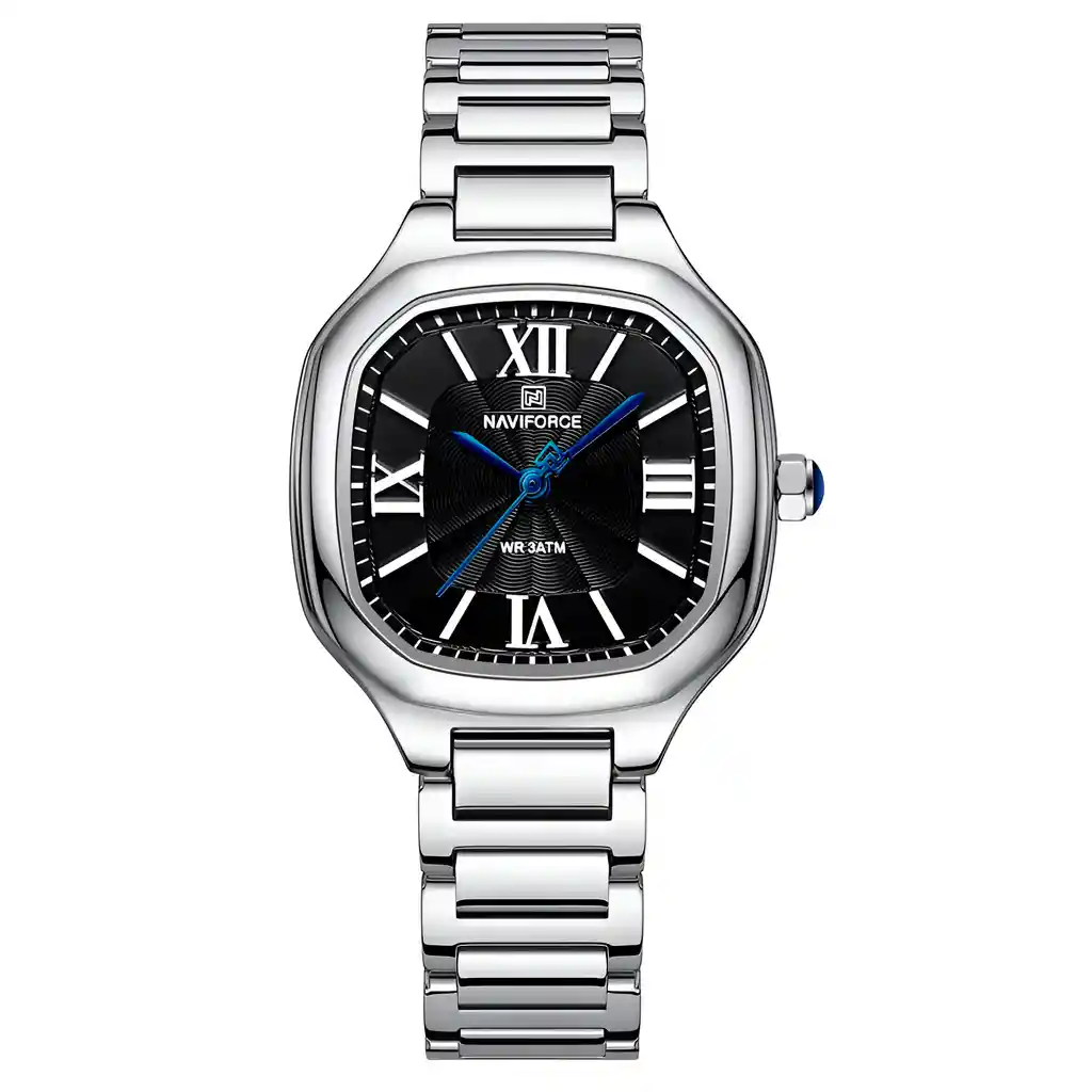 Descubre la elegancia y sofisticación de los relojes **Naviforce**, diseñados para quienes buscan estilo, calidad y funcionalidad en un solo accesorio. Con materiales de primera y un diseño innovador, este reloj no solo complementa tu look, sino que también resalta tu personalidad con un toque de lujo y distinción. Su correa elegante se adapta perfectamente a cualquier ocasión, permitiéndote lucir impecable en todo momento. Más que un simple reloj, **Naviforce** es sinónimo de prestigio y modernidad, ideal para quienes desean destacar con cada detalle. ¡Hazlo tuyo y eleva tu estilo al siguiente nivel! /// El reloj incluye su estuche original y tarjeta de garantía. /// Ficha Técnica Pantalla Análoga Resistencia al agua de 3ATM (solo exposición accidental al agua No ducha, No se puede sumergir, No usar en actividades acuáticas). Tipo de cierre: Hebilla Material de la caja: Aleación de Zinc Grosor de esfera: 0.9 cm Ancho correa: 1 cm Diámetro: 3.1 cm Material de la correa banda: Acero Inoxidable Longitud de La correa: 23 cm ( Ajustable ) Peso neto: 56g Términos de garantía: Para defectos de fábrica o solicitudes de retracto, es importante revisar el producto inmediatamente al recibirlo y antes de usarlo, ya que no aplicará garantía una vez utilizado. Se dispone de un máximo de 5 días para reportar defectos de fábrica, como piezas faltantes o rotas. En el caso de maquinaria, la garantía cubre tres meses para garantizar su correcto funcionamiento. Para efectuar una devolución, el producto debe ser devuelto en su empaque original, en buen estado, con todos los documentos y partes completas y sin daños.
