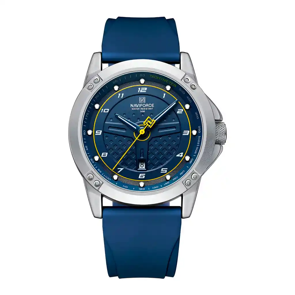 Descubre la elegancia y sofisticación de los relojes **Naviforce**, diseñados para quienes buscan estilo, calidad y funcionalidad en un solo accesorio. Con materiales de primera y un diseño innovador, este reloj no solo complementa tu look, sino que también resalta tu personalidad con un toque de lujo y distinción. Su correa elegante se adapta perfectamente a cualquier ocasión, permitiéndote lucir impecable en todo momento. Más que un simple reloj, **Naviforce** es sinónimo de prestigio y modernidad, ideal para quienes desean destacar con cada detalle. ¡Hazlo tuyo y eleva tu estilo al siguiente nivel! /// El reloj incluye su estuche original y tarjeta de garantía. /// Ficha Técnica Pantalla Análoga Resistencia al agua de 3ATM (solo exposición accidental al agua No ducha, No se puede sumergir, No usar en actividades acuáticas). Tipo de cierre: Hebilla Material de la caja: Aleación de Zinc Metal Grosor de esfera: 1.1 cm Ancho correa: 2.2 cm Diámetro: 4.3 cm Material de la correa banda: Goma Longitud de La correa: 26 cm Ajustable Peso neto: 73g Términos de garantía: Para defectos de fábrica o solicitudes de retracto, es importante revisar el producto inmediatamente al recibirlo y antes de usarlo, ya que no aplicará garantía una vez utilizado. Se dispone de un máximo de 5 días para reportar defectos de fábrica, como piezas faltantes o rotas. En el caso de maquinaria, la garantía cubre tres meses para garantizar su correcto funcionamiento. Para efectuar una devolución, el producto debe ser devuelto en su empaque original, en buen estado, con todos los documentos y partes completas y sin daños.