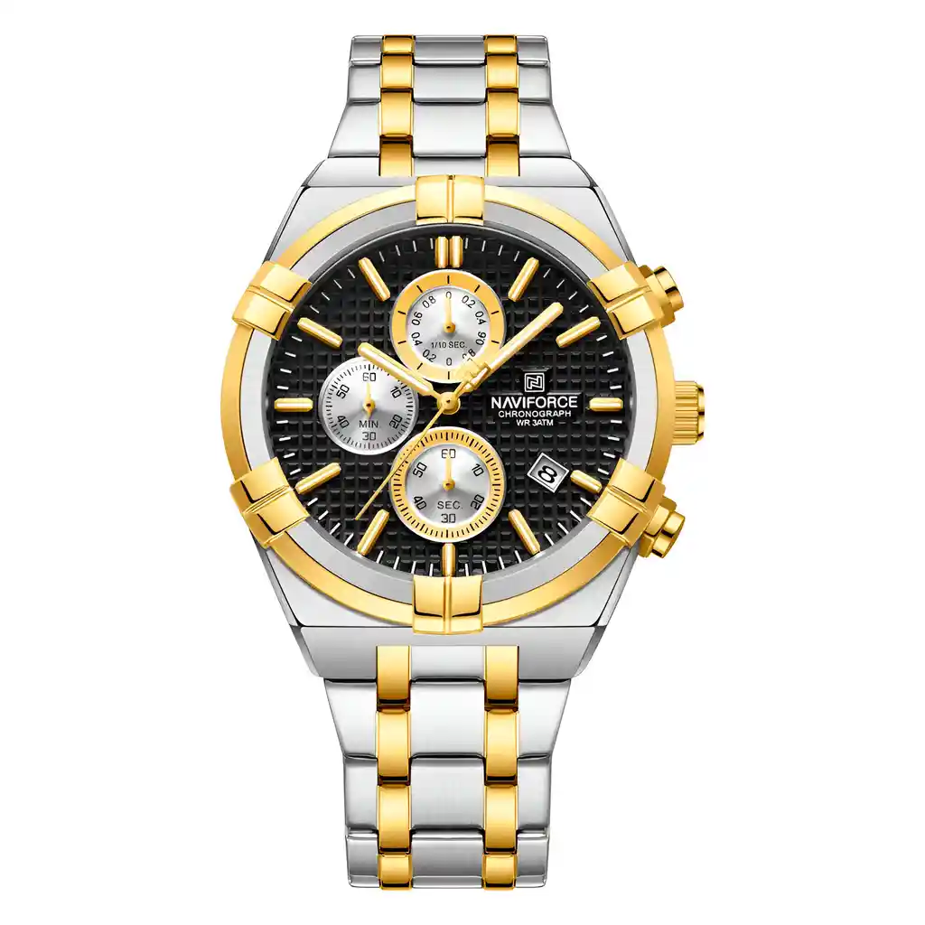 Descubre la elegancia y sofisticación de los relojes **Naviforce**, diseñados para quienes buscan estilo, calidad y funcionalidad en un solo accesorio. Con materiales de primera y un diseño innovador, este reloj no solo complementa tu look, sino que también resalta tu personalidad con un toque de lujo y distinción. Su correa elegante se adapta perfectamente a cualquier ocasión, permitiéndote lucir impecable en todo momento. Más que un simple reloj, **Naviforce** es sinónimo de prestigio y modernidad, ideal para quienes desean destacar con cada detalle. ¡Hazlo tuyo y eleva tu estilo al siguiente nivel! /// El reloj incluye su estuche original y tarjeta de garantía. /// Ficha Técnica Pantalla Análoga Resistencia al agua de 3ATM (solo exposición accidental al agua No ducha, No se puede sumergir, No usar en actividades acuáticas). Tipo de cierre: Hebilla Material de la caja: Aleación de Zinc Metal Grosor de esfera: 1.2 cm Ancho correa: 2 cm Diámetro: 4.3 cm Material de la correa banda: Acero Inoxidable Longitud de La correa: 24 cm ( Se puede recortar ) Peso neto: 135g Términos de garantía: Para defectos de fábrica o solicitudes de retracto, es importante revisar el producto inmediatamente al recibirlo y antes de usarlo, ya que no aplicará garantía una vez utilizado. Se dispone de un máximo de 5 días para reportar defectos de fábrica, como piezas faltantes o rotas. En el caso de maquinaria, la garantía cubre tres meses para garantizar su correcto funcionamiento. Para efectuar una devolución, el producto debe ser devuelto en su empaque original, en buen estado, con todos los documentos y partes completas y sin daños.