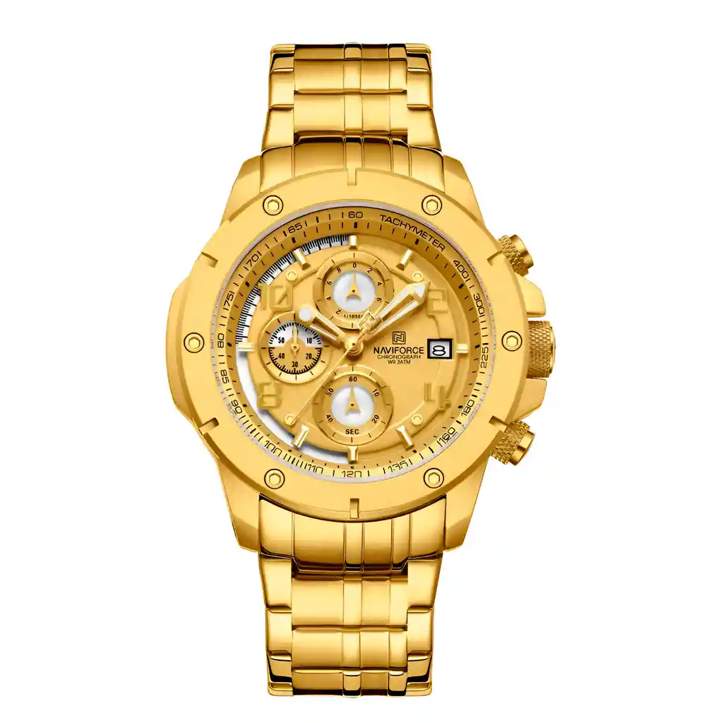 Descubre la elegancia y sofisticación de los relojes **Naviforce**, diseñados para quienes buscan estilo, calidad y funcionalidad en un solo accesorio. Con materiales de primera y un diseño innovador, este reloj no solo complementa tu look, sino que también resalta tu personalidad con un toque de lujo y distinción. Su correa elegante se adapta perfectamente a cualquier ocasión, permitiéndote lucir impecable en todo momento. Más que un simple reloj, **Naviforce** es sinónimo de prestigio y modernidad, ideal para quienes desean destacar con cada detalle. ¡Hazlo tuyo y eleva tu estilo al siguiente nivel! /// El reloj incluye su estuche original y tarjeta de garantía. /// Ficha Técnica Pantalla Análoga Resistencia al agua de 3ATM (solo exposición accidental al agua No ducha, No se puede sumergir, No usar en actividades acuáticas). Tipo de cierre: Hebilla Material de la caja: Aleación de Zinc Metal Grosor de esfera: 1.4 cm Ancho correa: 2 cm Diámetro: 4.6 cm Material de la correa banda: Acero Inoxidable Longitud de La correa: 24.5 cm ( Se puede recortar ) Peso neto: 178g Términos de garantía: Para defectos de fábrica o solicitudes de retracto, es importante revisar el producto inmediatamente al recibirlo y antes de usarlo, ya que no aplicará garantía una vez utilizado. Se dispone de un máximo de 5 días para reportar defectos de fábrica, como piezas faltantes o rotas. En el caso de maquinaria, la garantía cubre tres meses para garantizar su correcto funcionamiento. Para efectuar una devolución, el producto debe ser devuelto en su empaque original, en buen estado, con todos los documentos y partes completas y sin daños.