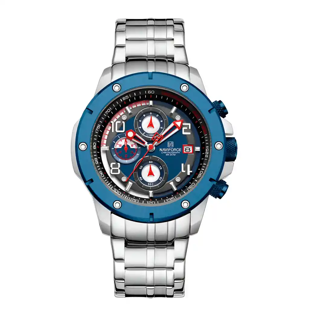 Descubre la elegancia y sofisticación de los relojes **Naviforce**, diseñados para quienes buscan estilo, calidad y funcionalidad en un solo accesorio. Con materiales de primera y un diseño innovador, este reloj no solo complementa tu look, sino que también resalta tu personalidad con un toque de lujo y distinción. Su correa elegante se adapta perfectamente a cualquier ocasión, permitiéndote lucir impecable en todo momento. Más que un simple reloj, **Naviforce** es sinónimo de prestigio y modernidad, ideal para quienes desean destacar con cada detalle. ¡Hazlo tuyo y eleva tu estilo al siguiente nivel! /// El reloj incluye su estuche original y tarjeta de garantía. /// Ficha Técnica Pantalla Análoga Resistencia al agua de 3ATM (solo exposición accidental al agua No ducha, No se puede sumergir, No usar en actividades acuáticas). Tipo de cierre: Hebilla Material de la caja: Aleación de Zinc Metal Grosor de esfera: 1.4 cm Ancho correa: 2 cm Diámetro: 4.6 cm Material de la correa banda: Acero Inoxidable Longitud de La correa: 24.5 cm ( Se puede recortar ) Peso neto: 178g Términos de garantía: Para defectos de fábrica o solicitudes de retracto, es importante revisar el producto inmediatamente al recibirlo y antes de usarlo, ya que no aplicará garantía una vez utilizado. Se dispone de un máximo de 5 días para reportar defectos de fábrica, como piezas faltantes o rotas. En el caso de maquinaria, la garantía cubre tres meses para garantizar su correcto funcionamiento. Para efectuar una devolución, el producto debe ser devuelto en su empaque original, en buen estado, con todos los documentos y partes completas y sin daños.