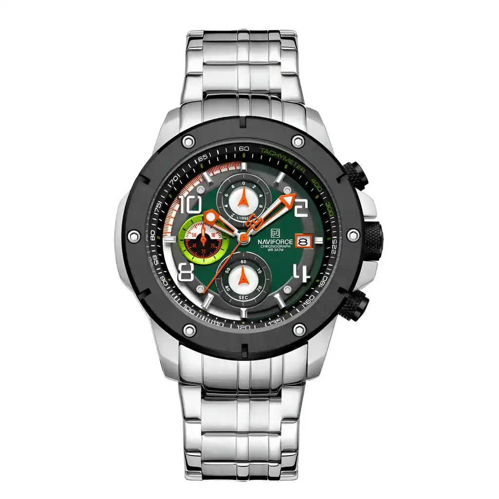 Descubre la elegancia y sofisticación de los relojes **Naviforce**, diseñados para quienes buscan estilo, calidad y funcionalidad en un solo accesorio. Con materiales de primera y un diseño innovador, este reloj no solo complementa tu look, sino que también resalta tu personalidad con un toque de lujo y distinción. Su correa elegante se adapta perfectamente a cualquier ocasión, permitiéndote lucir impecable en todo momento. Más que un simple reloj, **Naviforce** es sinónimo de prestigio y modernidad, ideal para quienes desean destacar con cada detalle. ¡Hazlo tuyo y eleva tu estilo al siguiente nivel! /// El reloj incluye su estuche original y tarjeta de garantía. /// Ficha Técnica Pantalla Análoga Resistencia al agua de 3ATM (solo exposición accidental al agua No ducha, No se puede sumergir, No usar en actividades acuáticas). Tipo de cierre: Hebilla Material de la caja: Aleación de Zinc Metal Grosor de esfera: 1.4 cm Ancho correa: 2 cm Diámetro: 4.6 cm Material de la correa banda: Acero Inoxidable Longitud de La correa: 24.5 cm ( Se puede recortar ) Peso neto: 178g Términos de garantía: Para defectos de fábrica o solicitudes de retracto, es importante revisar el producto inmediatamente al recibirlo y antes de usarlo, ya que no aplicará garantía una vez utilizado. Se dispone de un máximo de 5 días para reportar defectos de fábrica, como piezas faltantes o rotas. En el caso de maquinaria, la garantía cubre tres meses para garantizar su correcto funcionamiento. Para efectuar una devolución, el producto debe ser devuelto en su empaque original, en buen estado, con todos los documentos y partes completas y sin daños.