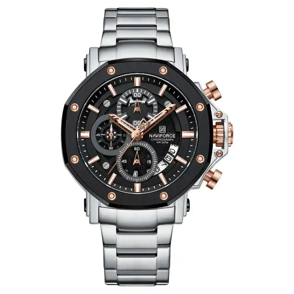 Descubre la elegancia y sofisticación de los relojes **Naviforce**, diseñados para quienes buscan estilo, calidad y funcionalidad en un solo accesorio. Con materiales de primera y un diseño innovador, este reloj no solo complementa tu look, sino que también resalta tu personalidad con un toque de lujo y distinción. Su correa elegante se adapta perfectamente a cualquier ocasión, permitiéndote lucir impecable en todo momento. Más que un simple reloj, **Naviforce** es sinónimo de prestigio y modernidad, ideal para quienes desean destacar con cada detalle. ¡Hazlo tuyo y eleva tu estilo al siguiente nivel! /// El reloj incluye su estuche original y tarjeta de garantía. /// Ficha Técnica Pantalla Análoga Resistencia al agua de 3ATM (solo exposición accidental al agua No ducha, No se puede sumergir, No usar en actividades acuáticas). Tipo de cierre: Hebilla Material de la caja: Aleación de Zinc Metal Grosor de esfera: 1.4 cm Ancho correa: 2 cm Diámetro: 4.4 cm Material de la correa banda: Acero Inoxidable Longitud de La correa: 24 cm ( Se puede recortar ) Peso neto: 161g Términos de garantía: Para defectos de fábrica o solicitudes de retracto, es importante revisar el producto inmediatamente al recibirlo y antes de usarlo, ya que no aplicará garantía una vez utilizado. Se dispone de un máximo de 5 días para reportar defectos de fábrica, como piezas faltantes o rotas. En el caso de maquinaria, la garantía cubre tres meses para garantizar su correcto funcionamiento. Para efectuar una devolución, el producto debe ser devuelto en su empaque original, en buen estado, con todos los documentos y partes completas y sin daños.