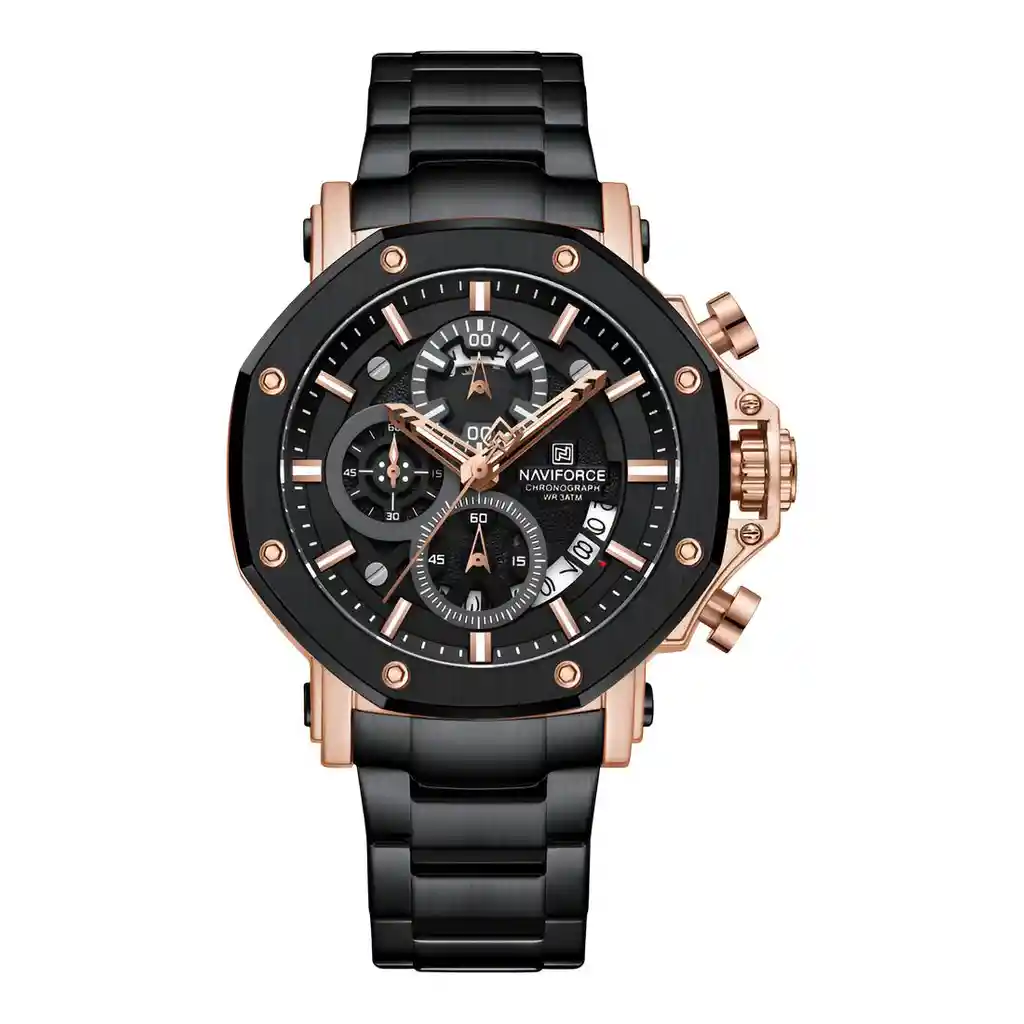 Descubre la elegancia y sofisticación de los relojes **Naviforce**, diseñados para quienes buscan estilo, calidad y funcionalidad en un solo accesorio. Con materiales de primera y un diseño innovador, este reloj no solo complementa tu look, sino que también resalta tu personalidad con un toque de lujo y distinción. Su correa elegante se adapta perfectamente a cualquier ocasión, permitiéndote lucir impecable en todo momento. Más que un simple reloj, **Naviforce** es sinónimo de prestigio y modernidad, ideal para quienes desean destacar con cada detalle. ¡Hazlo tuyo y eleva tu estilo al siguiente nivel! /// El reloj incluye su estuche original y tarjeta de garantía. /// Ficha Técnica Pantalla Análoga Resistencia al agua de 3ATM (solo exposición accidental al agua No ducha, No se puede sumergir, No usar en actividades acuáticas). Tipo de cierre: Hebilla Material de la caja: Aleación de Zinc Metal Grosor de esfera: 1.4 cm Ancho correa: 2 cm Diámetro: 4.4 cm Material de la correa banda: Acero Inoxidable Longitud de La correa: 24 cm ( Se puede recortar ) Peso neto: 161g Términos de garantía: Para defectos de fábrica o solicitudes de retracto, es importante revisar el producto inmediatamente al recibirlo y antes de usarlo, ya que no aplicará garantía una vez utilizado. Se dispone de un máximo de 5 días para reportar defectos de fábrica, como piezas faltantes o rotas. En el caso de maquinaria, la garantía cubre tres meses para garantizar su correcto funcionamiento. Para efectuar una devolución, el producto debe ser devuelto en su empaque original, en buen estado, con todos los documentos y partes completas y sin daños.