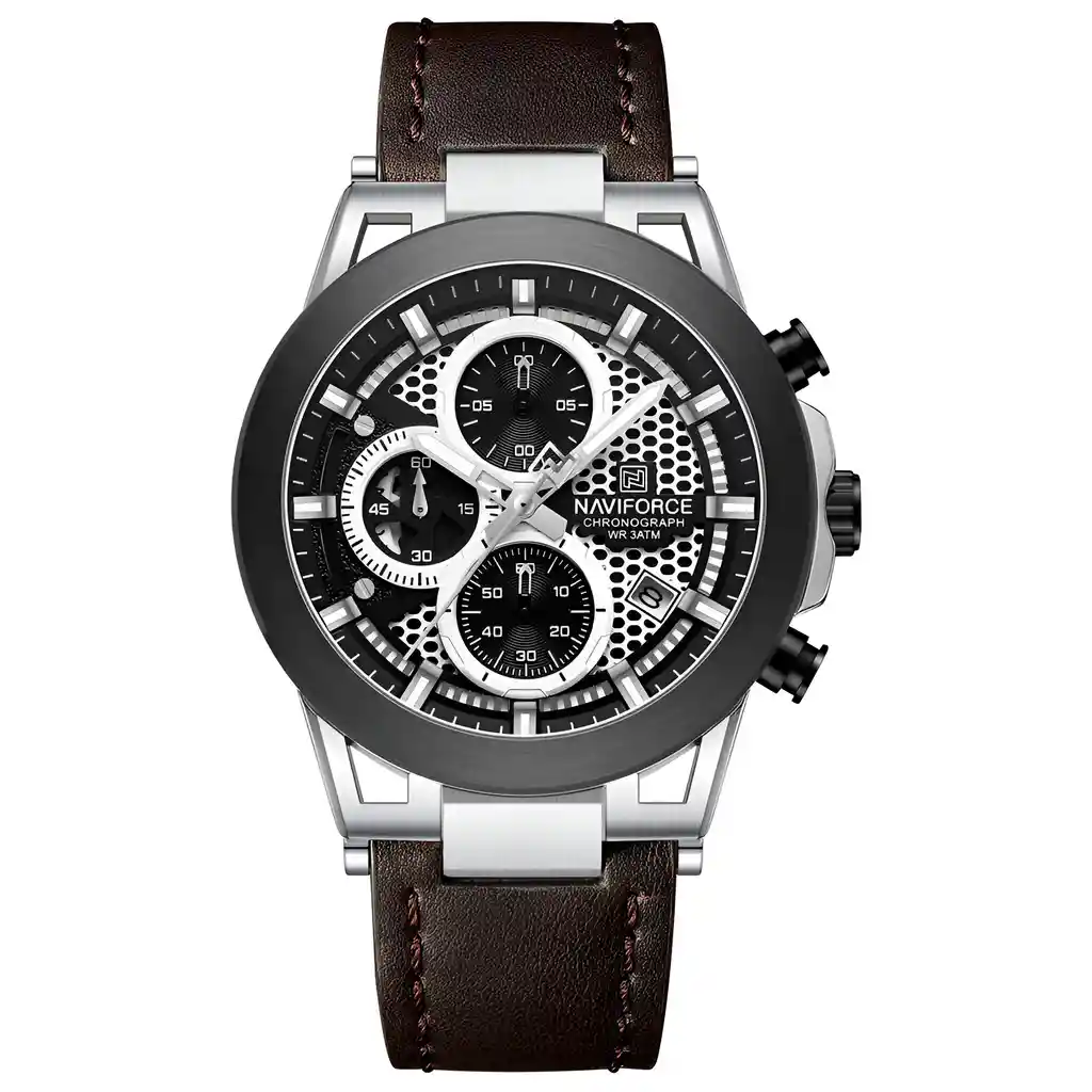 Descubre la elegancia y sofisticación de los relojes **Naviforce**, diseñados para quienes buscan estilo, calidad y funcionalidad en un solo accesorio. Con materiales de primera y un diseño innovador, este reloj no solo complementa tu look, sino que también resalta tu personalidad con un toque de lujo y distinción. Su correa elegante se adapta perfectamente a cualquier ocasión, permitiéndote lucir impecable en todo momento. Más que un simple reloj, **Naviforce** es sinónimo de prestigio y modernidad, ideal para quienes desean destacar con cada detalle. ¡Hazlo tuyo y eleva tu estilo al siguiente nivel! /// El reloj incluye su estuche original y tarjeta de garantía. /// Ficha Técnica Pantalla Análoga Resistencia al agua de 3ATM (solo exposición accidental al agua No ducha, No se puede sumergir, No usar en actividades acuáticas). Tipo de cierre: Hebilla Material de la caja: Aleación de Zinc Metal Grosor de esfera: 1.4 cm Ancho correa: 2.2 cm Diámetro: 4.3 cm Material de la correa banda: Cuero Longitud de La correa: 26 cm Ajustable Peso neto: 89g Términos de garantía: Para defectos de fábrica o solicitudes de retracto, es importante revisar el producto inmediatamente al recibirlo y antes de usarlo, ya que no aplicará garantía una vez utilizado. Se dispone de un máximo de 5 días para reportar defectos de fábrica, como piezas faltantes o rotas. En el caso de maquinaria, la garantía cubre tres meses para garantizar su correcto funcionamiento. Para efectuar una devolución, el producto debe ser devuelto en su empaque original, en buen estado, con todos los documentos y partes completas y sin daños.