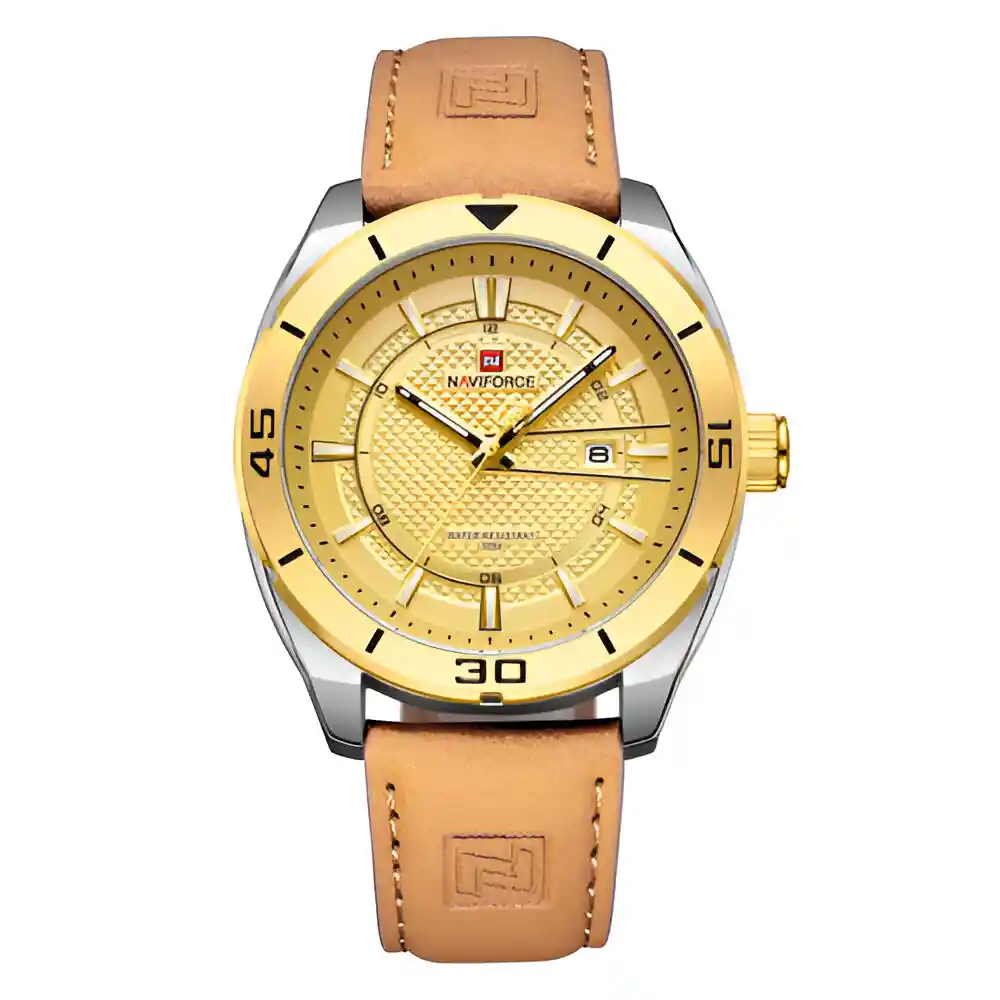 Descubre la elegancia y sofisticación de los relojes **Naviforce**, diseñados para quienes buscan estilo, calidad y funcionalidad en un solo accesorio. Con materiales de primera y un diseño innovador, este reloj no solo complementa tu look, sino que también resalta tu personalidad con un toque de lujo y distinción. Su correa elegante se adapta perfectamente a cualquier ocasión, permitiéndote lucir impecable en todo momento. Más que un simple reloj, **Naviforce** es sinónimo de prestigio y modernidad, ideal para quienes desean destacar con cada detalle. ¡Hazlo tuyo y eleva tu estilo al siguiente nivel! /// El reloj incluye su estuche original y tarjeta de garantía. /// Ficha Técnica Pantalla Análoga Resistencia al agua de 3ATM (solo exposición accidental al agua No ducha, No se puede sumergir, No usar en actividades acuáticas). Tipo de cierre: Hebilla Material de la caja: Aleación de Zinc Metal Grosor de esfera: 1.4 cm Ancho correa: 2.2 cm Diámetro: 4.5 cm Material de la correa banda: Cuero Longitud de La correa: 26 cm ( Ajustable ) Peso neto: 80.2g Términos de garantía: Para defectos de fábrica o solicitudes de retracto, es importante revisar el producto inmediatamente al recibirlo y antes de usarlo, ya que no aplicará garantía una vez utilizado. Se dispone de un máximo de 5 días para reportar defectos de fábrica, como piezas faltantes o rotas. En el caso de maquinaria, la garantía cubre tres meses para garantizar su correcto funcionamiento. Para efectuar una devolución, el producto debe ser devuelto en su empaque original, en buen estado, con todos los documentos y partes completas y sin daños.
