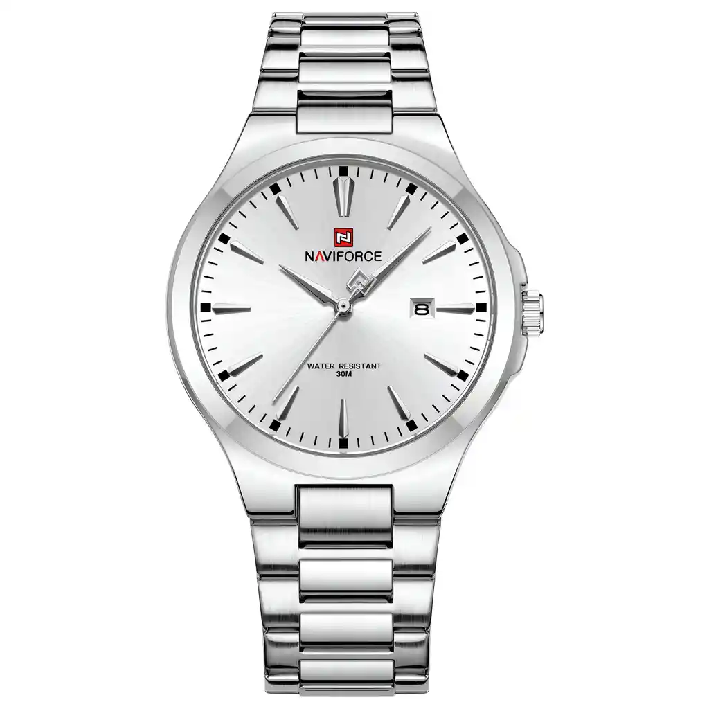 Descubre la elegancia y sofisticación de los relojes **Naviforce**, diseñados para quienes buscan estilo, calidad y funcionalidad en un solo accesorio. Con materiales de primera y un diseño innovador, este reloj no solo complementa tu look, sino que también resalta tu personalidad con un toque de lujo y distinción. Su correa elegante se adapta perfectamente a cualquier ocasión, permitiéndote lucir impecable en todo momento. Más que un simple reloj, **Naviforce** es sinónimo de prestigio y modernidad, ideal para quienes desean destacar con cada detalle. ¡Hazlo tuyo y eleva tu estilo al siguiente nivel! /// El reloj incluye su estuche original y tarjeta de garantía. /// Ficha Técnica Pantalla Análoga Resistencia al agua de 3ATM (solo exposición accidental al agua No ducha, No se puede sumergir, No usar en actividades acuáticas). Tipo de cierre: Hebilla Material de la caja: Aleación de Zinc Metal Grosor de esfera: 1 cm Ancho correa: 2.3 cm Diámetro: 4.1 cm Material de la correa banda: Acero Inoxidable Longitud de La correa: 24 cm ( Se puede recortar ) Peso neto: 125g Términos de garantía: Para defectos de fábrica o solicitudes de retracto, es importante revisar el producto inmediatamente al recibirlo y antes de usarlo, ya que no aplicará garantía una vez utilizado. Se dispone de un máximo de 5 días para reportar defectos de fábrica, como piezas faltantes o rotas. En el caso de maquinaria, la garantía cubre tres meses para garantizar su correcto funcionamiento. Para efectuar una devolución, el producto debe ser devuelto en su empaque original, en buen estado, con todos los documentos y partes completas y sin daños.
