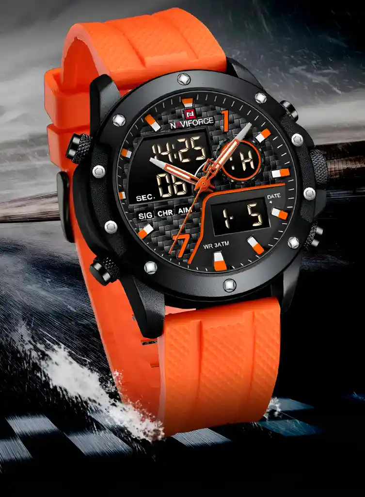 Descubre la elegancia y sofisticación de los relojes **Naviforce**, diseñados para quienes buscan estilo, calidad y funcionalidad en un solo accesorio. Con materiales de primera y un diseño innovador, este reloj no solo complementa tu look, sino que también resalta tu personalidad con un toque de lujo y distinción. Su correa elegante se adapta perfectamente a cualquier ocasión, permitiéndote lucir impecable en todo momento. Más que un simple reloj, **Naviforce** es sinónimo de prestigio y modernidad, ideal para quienes desean destacar con cada detalle. ¡Hazlo tuyo y eleva tu estilo al siguiente nivel! /// El reloj incluye su estuche original y tarjeta de garantía. /// Ficha Técnica Pantalla Análoga Resistencia al agua de 3ATM (solo exposición accidental al agua No ducha, No se puede sumergir, No usar en actividades acuáticas). Tipo de cierre: Hebilla Material de la caja: Aleación de Zinc Metal Grosor de esfera: 1.6 cm Ancho correa: 2.4 cm Diámetro: 4.6 cm Material de la correa banda: Goma Longitud de La correa: 25.5 cm ( Ajustable ) Peso neto: 104g Términos de garantía: Para defectos de fábrica o solicitudes de retracto, es importante revisar el producto inmediatamente al recibirlo y antes de usarlo, ya que no aplicará garantía una vez utilizado. Se dispone de un máximo de 5 días para reportar defectos de fábrica, como piezas faltantes o rotas. En el caso de maquinaria, la garantía cubre tres meses para garantizar su correcto funcionamiento. Para efectuar una devolución, el producto debe ser devuelto en su empaque original, en buen estado, con todos los documentos y partes completas y sin daños.