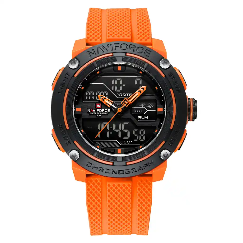 Descubre la elegancia y sofisticación de los relojes **Naviforce**, diseñados para quienes buscan estilo, calidad y funcionalidad en un solo accesorio. Con materiales de primera y un diseño innovador, este reloj no solo complementa tu look, sino que también resalta tu personalidad con un toque de lujo y distinción. Su correa elegante se adapta perfectamente a cualquier ocasión, permitiéndote lucir impecable en todo momento. Más que un simple reloj, **Naviforce** es sinónimo de prestigio y modernidad, ideal para quienes desean destacar con cada detalle. ¡Hazlo tuyo y eleva tu estilo al siguiente nivel! /// El reloj incluye su estuche original y tarjeta de garantía. /// Ficha Técnica Pantalla Análoga Resistencia al agua de 3ATM (solo exposición accidental al agua No ducha, No se puede sumergir, No usar en actividades acuáticas). Tipo de cierre: Hebilla Material de la caja: Aleación de Zinc Metal Grosor de esfera: 1.8 cm Ancho correa: 2.2 cm Diámetro: 4.9 cm Material de la correa banda: Goma Longitud de La correa: 25 cm Ajustable Peso neto: 65g Términos de garantía: Para defectos de fábrica o solicitudes de retracto, es importante revisar el producto inmediatamente al recibirlo y antes de usarlo, ya que no aplicará garantía una vez utilizado. Se dispone de un máximo de 5 días para reportar defectos de fábrica, como piezas faltantes o rotas. En el caso de maquinaria, la garantía cubre tres meses para garantizar su correcto funcionamiento. Para efectuar una devolución, el producto debe ser devuelto en su empaque original, en buen estado, con todos los documentos y partes completas y sin daños.
