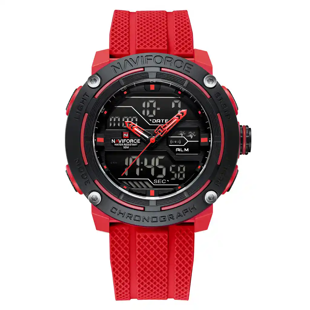 Descubre la elegancia y sofisticación de los relojes **Naviforce**, diseñados para quienes buscan estilo, calidad y funcionalidad en un solo accesorio. Con materiales de primera y un diseño innovador, este reloj no solo complementa tu look, sino que también resalta tu personalidad con un toque de lujo y distinción. Su correa elegante se adapta perfectamente a cualquier ocasión, permitiéndote lucir impecable en todo momento. Más que un simple reloj, **Naviforce** es sinónimo de prestigio y modernidad, ideal para quienes desean destacar con cada detalle. ¡Hazlo tuyo y eleva tu estilo al siguiente nivel! /// El reloj incluye su estuche original y tarjeta de garantía. /// Ficha Técnica Pantalla Análoga Resistencia al agua de 3ATM (solo exposición accidental al agua No ducha, No se puede sumergir, No usar en actividades acuáticas). Tipo de cierre: Hebilla Material de la caja: Aleación de Zinc Metal Grosor de esfera: 1.8 cm Ancho correa: 2.2 cm Diámetro: 4.9 cm Material de la correa banda: Goma Longitud de La correa: 25 cm Ajustable Peso neto: 65g Términos de garantía: Para defectos de fábrica o solicitudes de retracto, es importante revisar el producto inmediatamente al recibirlo y antes de usarlo, ya que no aplicará garantía una vez utilizado. Se dispone de un máximo de 5 días para reportar defectos de fábrica, como piezas faltantes o rotas. En el caso de maquinaria, la garantía cubre tres meses para garantizar su correcto funcionamiento. Para efectuar una devolución, el producto debe ser devuelto en su empaque original, en buen estado, con todos los documentos y partes completas y sin daños.