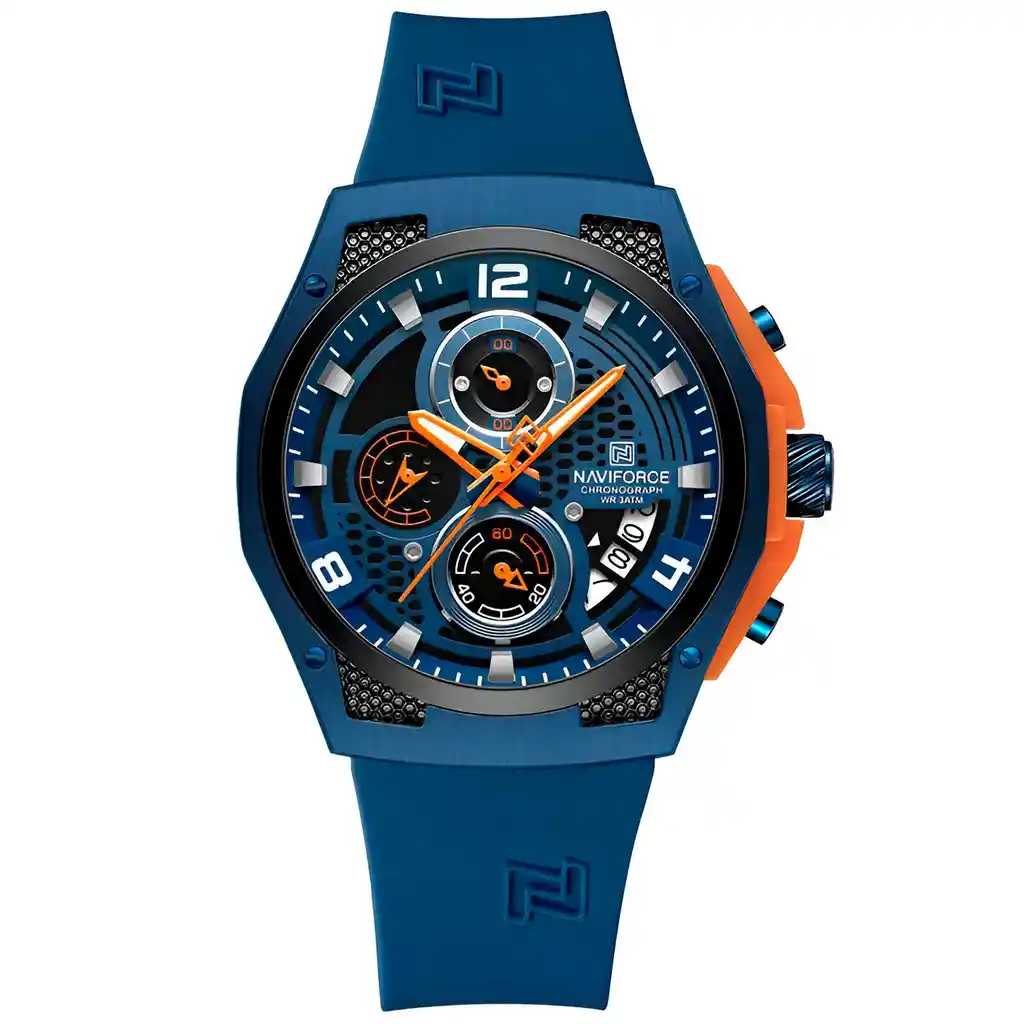 Descubre la elegancia y sofisticación de los relojes **Naviforce**, diseñados para quienes buscan estilo, calidad y funcionalidad en un solo accesorio. Con materiales de primera y un diseño innovador, este reloj no solo complementa tu look, sino que también resalta tu personalidad con un toque de lujo y distinción. Su correa elegante se adapta perfectamente a cualquier ocasión, permitiéndote lucir impecable en todo momento. Más que un simple reloj, **Naviforce** es sinónimo de prestigio y modernidad, ideal para quienes desean destacar con cada detalle. ¡Hazlo tuyo y eleva tu estilo al siguiente nivel! /// El reloj incluye su estuche original y tarjeta de garantía. /// Ficha Técnica Pantalla Análoga Resistencia al agua de 3ATM (solo exposición accidental al agua No ducha, No se puede sumergir, No usar en actividades acuáticas). Tipo de cierre: Hebilla Material de la caja: Aleación de Zinc Metal Grosor de esfera: 1.3 cm Ancho correa: 2 cm Diámetro: 4.4 cm Material de la correa banda: Goma Longitud de La correa: 25.5 cm Ajustable Peso neto: 87g Términos de garantía: Para defectos de fábrica o solicitudes de retracto, es importante revisar el producto inmediatamente al recibirlo y antes de usarlo, ya que no aplicará garantía una vez utilizado. Se dispone de un máximo de 5 días para reportar defectos de fábrica, como piezas faltantes o rotas. En el caso de maquinaria, la garantía cubre tres meses para garantizar su correcto funcionamiento. Para efectuar una devolución, el producto debe ser devuelto en su empaque original, en buen estado, con todos los documentos y partes completas y sin daños.