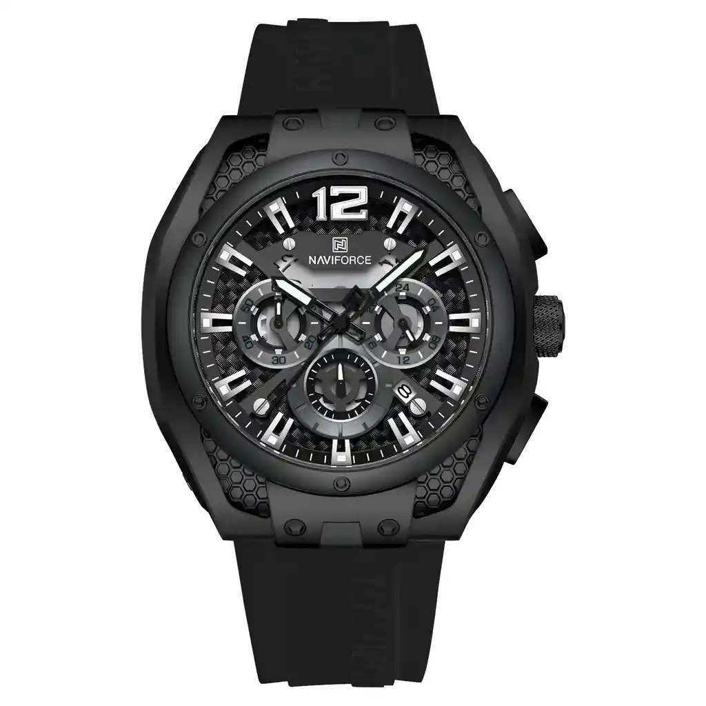 Descubre la elegancia y sofisticación de los relojes **Naviforce**, diseñados para quienes buscan estilo, calidad y funcionalidad en un solo accesorio. Con materiales de primera y un diseño innovador, este reloj no solo complementa tu look, sino que también resalta tu personalidad con un toque de lujo y distinción. Su correa elegante se adapta perfectamente a cualquier ocasión, permitiéndote lucir impecable en todo momento. Más que un simple reloj, **Naviforce** es sinónimo de prestigio y modernidad, ideal para quienes desean destacar con cada detalle. ¡Hazlo tuyo y eleva tu estilo al siguiente nivel! /// El reloj incluye su estuche original y tarjeta de garantía. /// Ficha Técnica Pantalla Análoga Resistencia al agua de 3ATM (solo exposición accidental al agua No ducha, No se puede sumergir, No usar en actividades acuáticas). Tipo de cierre: Hebilla Material de la caja: Aleación de Zinc Metal Grosor de esfera: 1.4 cm Ancho correa: 2 cm Diámetro: 4.6 cm Material de la correa banda: Goma Longitud de La correa: 26 cm Ajustable Peso neto: 110g Términos de garantía: Para defectos de fábrica o solicitudes de retracto, es importante revisar el producto inmediatamente al recibirlo y antes de usarlo, ya que no aplicará garantía una vez utilizado. Se dispone de un máximo de 5 días para reportar defectos de fábrica, como piezas faltantes o rotas. En el caso de maquinaria, la garantía cubre tres meses para garantizar su correcto funcionamiento. Para efectuar una devolución, el producto debe ser devuelto en su empaque original, en buen estado, con todos los documentos y partes completas y sin daños.