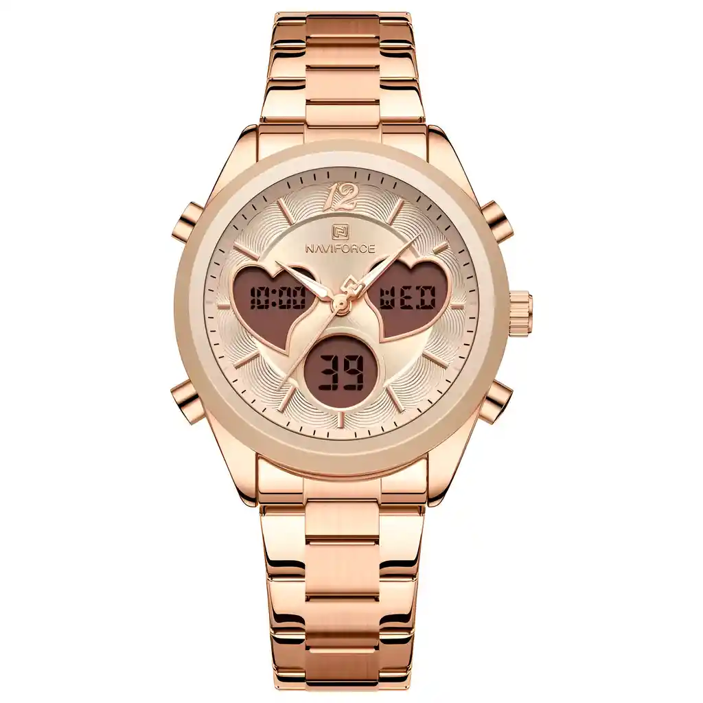 Descubre la elegancia y sofisticación de los relojes **Naviforce**, diseñados para quienes buscan estilo, calidad y funcionalidad en un solo accesorio. Con materiales de primera y un diseño innovador, este reloj no solo complementa tu look, sino que también resalta tu personalidad con un toque de lujo y distinción. Su correa elegante se adapta perfectamente a cualquier ocasión, permitiéndote lucir impecable en todo momento. Más que un simple reloj, **Naviforce** es sinónimo de prestigio y modernidad, ideal para quienes desean destacar con cada detalle. ¡Hazlo tuyo y eleva tu estilo al siguiente nivel! /// El reloj incluye su estuche original y tarjeta de garantía. /// Ficha Técnica Pantalla Análoga Resistencia al agua de 3ATM (solo exposición accidental al agua No ducha, No se puede sumergir, No usar en actividades acuáticas). Tipo de cierre: Hebilla Material de la caja: Aleacion de Zinc Metal Grosor de esfera: 1.4 cm Ancho correa: 1.8 cm Diámetro: 3.6 cm Material de la correa banda: Acero Inoxidable Longitud de La correa: 23 cm ( Ajustable ) Peso neto: 98 gr Términos de garantía: Para defectos de fábrica o solicitudes de retracto, es importante revisar el producto inmediatamente al recibirlo y antes de usarlo, ya que no aplicará garantía una vez utilizado. Se dispone de un máximo de 5 días para reportar defectos de fábrica, como piezas faltantes o rotas. En el caso de maquinaria, la garantía cubre tres meses para garantizar su correcto funcionamiento. Para efectuar una devolución, el producto debe ser devuelto en su empaque original, en buen estado, con todos los documentos y partes completas y sin daños.