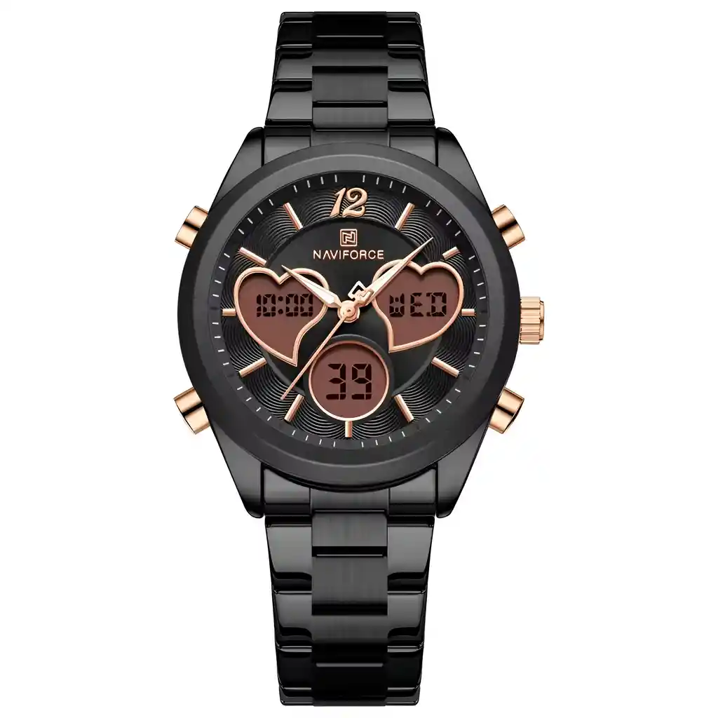 Descubre la elegancia y sofisticación de los relojes **Naviforce**, diseñados para quienes buscan estilo, calidad y funcionalidad en un solo accesorio. Con materiales de primera y un diseño innovador, este reloj no solo complementa tu look, sino que también resalta tu personalidad con un toque de lujo y distinción. Su correa elegante se adapta perfectamente a cualquier ocasión, permitiéndote lucir impecable en todo momento. Más que un simple reloj, **Naviforce** es sinónimo de prestigio y modernidad, ideal para quienes desean destacar con cada detalle. ¡Hazlo tuyo y eleva tu estilo al siguiente nivel! /// El reloj incluye su estuche original y tarjeta de garantía. /// Ficha Técnica Pantalla Análoga Resistencia al agua de 3ATM (solo exposición accidental al agua No ducha, No se puede sumergir, No usar en actividades acuáticas). Tipo de cierre: Hebilla Material de la caja: Aleacion de Zinc Metal Grosor de esfera: 1.4 cm Ancho correa: 1.8 cm Diámetro: 3.6 cm Material de la correa banda: Acero Inoxidable Longitud de La correa: 23 cm ( Ajustable ) Peso neto: 98 gr Términos de garantía: Para defectos de fábrica o solicitudes de retracto, es importante revisar el producto inmediatamente al recibirlo y antes de usarlo, ya que no aplicará garantía una vez utilizado. Se dispone de un máximo de 5 días para reportar defectos de fábrica, como piezas faltantes o rotas. En el caso de maquinaria, la garantía cubre tres meses para garantizar su correcto funcionamiento. Para efectuar una devolución, el producto debe ser devuelto en su empaque original, en buen estado, con todos los documentos y partes completas y sin daños.