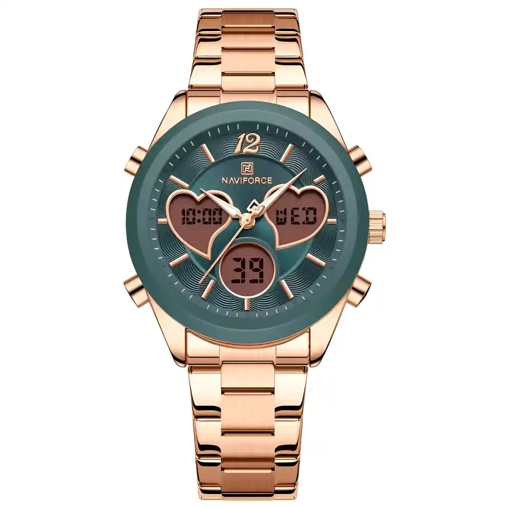 Descubre la elegancia y sofisticación de los relojes **Naviforce**, diseñados para quienes buscan estilo, calidad y funcionalidad en un solo accesorio. Con materiales de primera y un diseño innovador, este reloj no solo complementa tu look, sino que también resalta tu personalidad con un toque de lujo y distinción. Su correa elegante se adapta perfectamente a cualquier ocasión, permitiéndote lucir impecable en todo momento. Más que un simple reloj, **Naviforce** es sinónimo de prestigio y modernidad, ideal para quienes desean destacar con cada detalle. ¡Hazlo tuyo y eleva tu estilo al siguiente nivel! /// El reloj incluye su estuche original y tarjeta de garantía. /// Ficha Técnica Pantalla Análoga Resistencia al agua de 3ATM (solo exposición accidental al agua No ducha, No se puede sumergir, No usar en actividades acuáticas). Tipo de cierre: Hebilla Material de la caja: Aleacion de Zinc Metal Grosor de esfera: 1.4 cm Ancho correa: 1.8 cm Diámetro: 3.6 cm Material de la correa banda: Acero Inoxidable Longitud de La correa: 23 cm ( Ajustable ) Peso neto: 98 gr Términos de garantía: Para defectos de fábrica o solicitudes de retracto, es importante revisar el producto inmediatamente al recibirlo y antes de usarlo, ya que no aplicará garantía una vez utilizado. Se dispone de un máximo de 5 días para reportar defectos de fábrica, como piezas faltantes o rotas. En el caso de maquinaria, la garantía cubre tres meses para garantizar su correcto funcionamiento. Para efectuar una devolución, el producto debe ser devuelto en su empaque original, en buen estado, con todos los documentos y partes completas y sin daños.