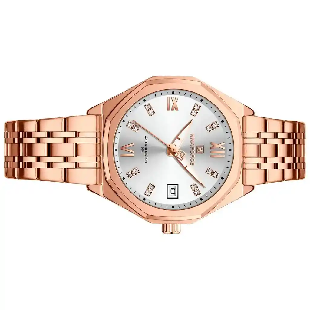 Descubre la elegancia y sofisticación de los relojes **Naviforce**, diseñados para quienes buscan estilo, calidad y funcionalidad en un solo accesorio. Con materiales de primera y un diseño innovador, este reloj no solo complementa tu look, sino que también resalta tu personalidad con un toque de lujo y distinción. Su correa elegante se adapta perfectamente a cualquier ocasión, permitiéndote lucir impecable en todo momento. Más que un simple reloj, **Naviforce** es sinónimo de prestigio y modernidad, ideal para quienes desean destacar con cada detalle. ¡Hazlo tuyo y eleva tu estilo al siguiente nivel! /// El reloj incluye su estuche original y tarjeta de garantía. /// Ficha Técnica Pantalla Análoga Resistencia al agua de 3ATM (solo exposición accidental al agua No ducha, No se puede sumergir, No usar en actividades acuáticas). Tipo de cierre: Hebilla Material de la caja: Aleación de Zinc Grosor de esfera: 1 cm Ancho correa: 1.4cm Diámetro: 3.3 cm Material de la correa banda: Acero Inoxidable Longitud de La correa: 22 cm ( Ajustable ) Peso neto: 69 g Términos de garantía: Para defectos de fábrica o solicitudes de retracto, es importante revisar el producto inmediatamente al recibirlo y antes de usarlo, ya que no aplicará garantía una vez utilizado. Se dispone de un máximo de 5 días para reportar defectos de fábrica, como piezas faltantes o rotas. En el caso de maquinaria, la garantía cubre tres meses para garantizar su correcto funcionamiento. Para efectuar una devolución, el producto debe ser devuelto en su empaque original, en buen estado, con todos los documentos y partes completas y sin daños.