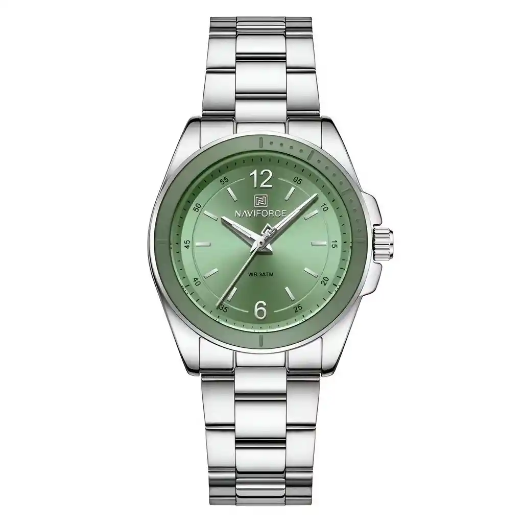 Los mejores relojes te los trae la marca Naviforce con sus sorprendentes estilos que definitivamente te enamoraran. Todos sus diseños son inspirados en la comodidad y satisfacción del cliente, ofreciéndote relojes con materiales de la más alta calidad, estilos innovadores y de cualidades inigualables. El reloj Naviforce es un accesorio indispensable que cumplirá con todas las expectativas que buscas en un reloj, uniendo lo mejor de la moda y destacando tu belleza a la hora de portarlo. /// El reloj incluye su estuche original y tarjeta de garantía. /// Ficha Técnica Pantalla Análoga Resistencia al agua de 3ATM (solo exposición accidental al agua No ducha, No se puede sumergir, No usar en actividades acuáticas). Tipo de cierre: Hebilla Material de la caja: Aleación de zinc metal Ancho de la correa: 1.8 cm Grosor de la caja: 1.1 cm Diámetro: 3.3 cm Material de la correa banda: Acero Inoxidable Longitud de La correa: 23 cm Peso neto: 80 gr Términos de garantía:_Para defectos de fábrica o retractos: _Por favor revise el producto apenas lo reciba y antes de usarlo. No aplican ley de retracto o defectos de fábrica luego de usar el producto. Se manejan máximo 5 días para reportar defectos de fábrica (por ejemplo, piezas faltantes, rotas, etc). En cuanto a maquinaria se da tres meses de garantía, es decir el buen funcionamiento del producto. Para hacer efectiva la devolución el producto debe devolverse con el empaque original, el cual debe estar en buen estado, incluir todos los documentos y las partes completas y sin daños.