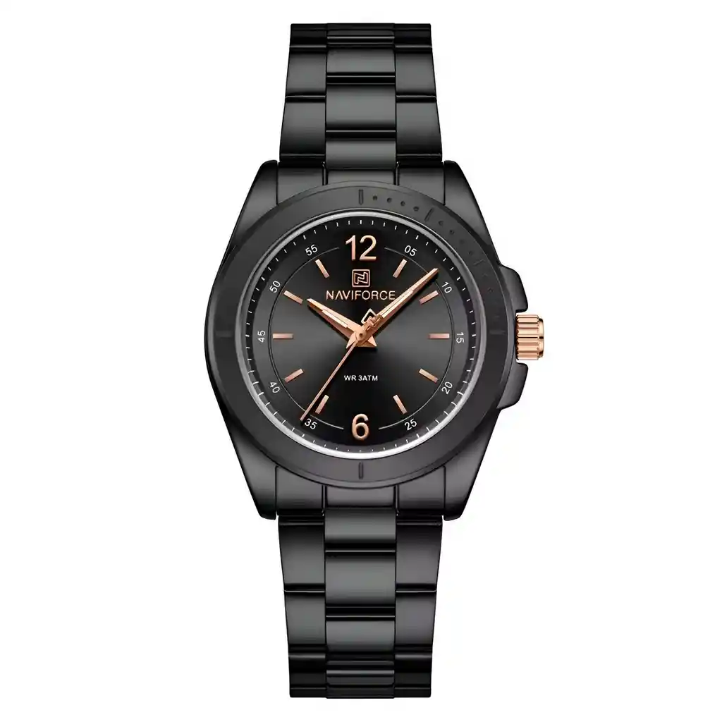 Los mejores relojes te los trae la marca Naviforce con sus sorprendentes estilos que definitivamente te enamoraran. Todos sus diseños son inspirados en la comodidad y satisfacción del cliente, ofreciéndote relojes con materiales de la más alta calidad, estilos innovadores y de cualidades inigualables. El reloj Naviforce es un accesorio indispensable que cumplirá con todas las expectativas que buscas en un reloj, uniendo lo mejor de la moda y destacando tu belleza a la hora de portarlo. /// El reloj incluye su estuche original y tarjeta de garantía. /// Ficha Técnica Pantalla Análoga Resistencia al agua de 3ATM (solo exposición accidental al agua No ducha, No se puede sumergir, No usar en actividades acuáticas). Tipo de cierre: Hebilla Material de la caja: Aleación de zinc metal Ancho de la correa: 1.8 cm Grosor de la caja: 1.1 cm Diámetro: 3.3 cm Material de la correa banda: Acero Inoxidable Longitud de La correa: 23 cm Peso neto: 80 gr Términos de garantía:_Para defectos de fábrica o retractos: _Por favor revise el producto apenas lo reciba y antes de usarlo. No aplican ley de retracto o defectos de fábrica luego de usar el producto. Se manejan máximo 5 días para reportar defectos de fábrica (por ejemplo, piezas faltantes, rotas, etc). En cuanto a maquinaria se da tres meses de garantía, es decir el buen funcionamiento del producto. Para hacer efectiva la devolución el producto debe devolverse con el empaque original, el cual debe estar en buen estado, incluir todos los documentos y las partes completas y sin daños.