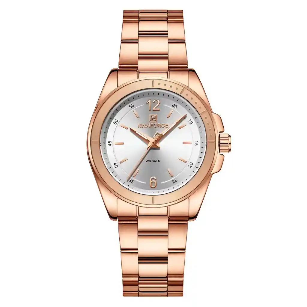 Los mejores relojes te los trae la marca Naviforce con sus sorprendentes estilos que definitivamente te enamoraran. Todos sus diseños son inspirados en la comodidad y satisfacción del cliente, ofreciéndote relojes con materiales de la más alta calidad, estilos innovadores y de cualidades inigualables. El reloj Naviforce es un accesorio indispensable que cumplirá con todas las expectativas que buscas en un reloj, uniendo lo mejor de la moda y destacando tu belleza a la hora de portarlo. /// El reloj incluye su estuche original y tarjeta de garantía. /// Ficha Técnica Pantalla Análoga Resistencia al agua de 3ATM (solo exposición accidental al agua No ducha, No se puede sumergir, No usar en actividades acuáticas). Tipo de cierre: Hebilla Material de la caja: Aleación de zinc metal Ancho de la correa: 1.8 cm Grosor de la caja: 1.1 cm Diámetro: 3.3 cm Material de la correa banda: Acero Inoxidable Longitud de La correa: 23 cm Peso neto: 80 gr Términos de garantía:_Para defectos de fábrica o retractos: _Por favor revise el producto apenas lo reciba y antes de usarlo. No aplican ley de retracto o defectos de fábrica luego de usar el producto. Se manejan máximo 5 días para reportar defectos de fábrica (por ejemplo, piezas faltantes, rotas, etc). En cuanto a maquinaria se da tres meses de garantía, es decir el buen funcionamiento del producto. Para hacer efectiva la devolución el producto debe devolverse con el empaque original, el cual debe estar en buen estado, incluir todos los documentos y las partes completas y sin daños.