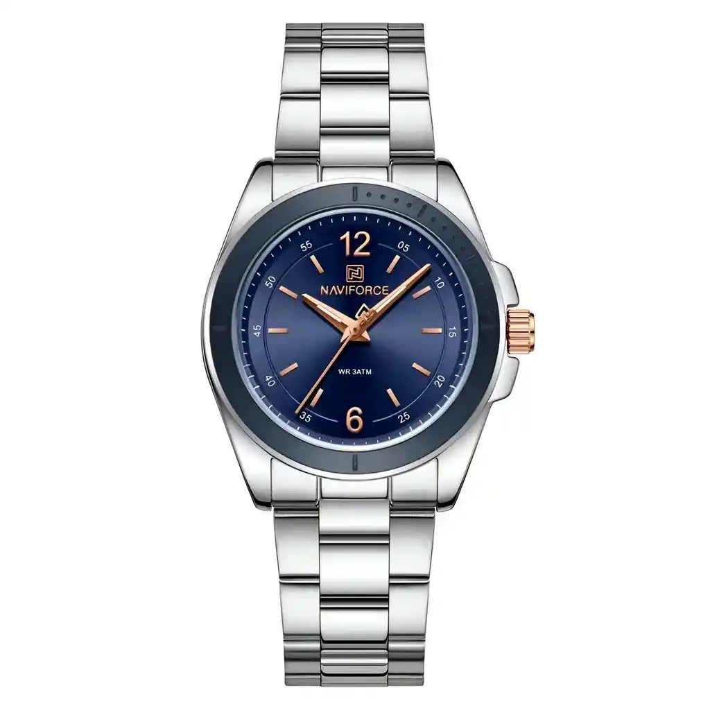 Los mejores relojes te los trae la marca Naviforce con sus sorprendentes estilos que definitivamente te enamoraran. Todos sus diseños son inspirados en la comodidad y satisfacción del cliente, ofreciéndote relojes con materiales de la más alta calidad, estilos innovadores y de cualidades inigualables. El reloj Naviforce es un accesorio indispensable que cumplirá con todas las expectativas que buscas en un reloj, uniendo lo mejor de la moda y destacando tu belleza a la hora de portarlo. /// El reloj incluye su estuche original y tarjeta de garantía. /// Ficha Técnica Pantalla Análoga Resistencia al agua de 3ATM (solo exposición accidental al agua No ducha, No se puede sumergir, No usar en actividades acuáticas). Tipo de cierre: Hebilla Material de la caja: Aleación de zinc metal Ancho de la correa: 1.8 cm Grosor de la caja: 1.1 cm Diámetro: 3.3 cm Material de la correa banda: Acero Inoxidable Longitud de La correa: 23 cm Peso neto: 80 gr Términos de garantía:_Para defectos de fábrica o retractos: _Por favor revise el producto apenas lo reciba y antes de usarlo. No aplican ley de retracto o defectos de fábrica luego de usar el producto. Se manejan máximo 5 días para reportar defectos de fábrica (por ejemplo, piezas faltantes, rotas, etc). En cuanto a maquinaria se da tres meses de garantía, es decir el buen funcionamiento del producto. Para hacer efectiva la devolución el producto debe devolverse con el empaque original, el cual debe estar en buen estado, incluir todos los documentos y las partes completas y sin daños.