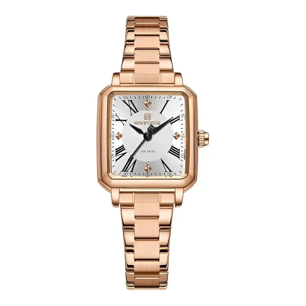 Los mejores relojes te los trae la marca Naviforce con sus sorprendentes estilos que definitivamente te enamoraran. Todos sus diseños son inspirados en la comodidad y satisfacción del cliente, ofreciéndote relojes con materiales de la más alta calidad, estilos innovadores y de cualidades inigualables. El reloj Naviforce es un accesorio indispensable que cumplirá con todas las expectativas que buscas en un reloj, uniendo lo mejor de la moda y destacando tu belleza a la hora de portarlo. /// El reloj incluye su estuche original y tarjeta de garantía. /// Ficha Técnica Pantalla Análoga Resistencia al agua de 3ATM (solo exposición accidental al agua No ducha, No se puede sumergir, No usar en actividades acuáticas). Tipo de cierre: Hebilla Material de la caja: Aleación de zinc metal Ancho de la correa: 1.4 cm Grosor de la caja: 1.2 cm Diámetro: 2.6 cm Material de la correa banda: Acero Inoxidable Longitud de La correa: 23 cm Peso neto: 60 gr Términos de garantía:_Para defectos de fábrica o retractos: _Por favor revise el producto apenas lo reciba y antes de usarlo. No aplican ley de retracto o defectos de fábrica luego de usar el producto. Se manejan máximo 5 días para reportar defectos de fábrica (por ejemplo, piezas faltantes, rotas, etc). En cuanto a maquinaria se da tres meses de garantía, es decir el buen funcionamiento del producto. Para hacer efectiva la devolución el producto debe devolverse con el empaque original, el cual debe estar en buen estado, incluir todos los documentos y las partes completas y sin daños.