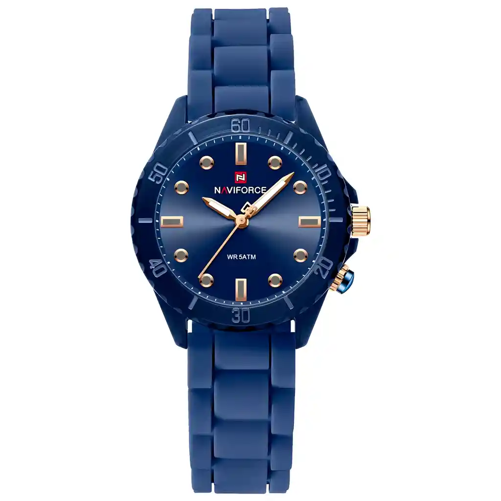 Descubre la elegancia y sofisticación de los relojes **Naviforce**, diseñados para quienes buscan estilo, calidad y funcionalidad en un solo accesorio. Con materiales de primera y un diseño innovador, este reloj no solo complementa tu look, sino que también resalta tu personalidad con un toque de lujo y distinción. Su correa elegante se adapta perfectamente a cualquier ocasión, permitiéndote lucir impecable en todo momento. Más que un simple reloj, **Naviforce** es sinónimo de prestigio y modernidad, ideal para quienes desean destacar con cada detalle. ¡Hazlo tuyo y eleva tu estilo al siguiente nivel! /// El reloj incluye su estuche original y tarjeta de garantía. /// Ficha Técnica Pantalla Análoga Resistencia al agua de 3ATM (solo exposición accidental al agua No ducha, No se puede sumergir, No usar en actividades acuáticas). Tipo de cierre: Hebilla Material de la caja: Policarbonato Grosor de esfera: 1.2 cm Ancho correa: 1.8 cm Diámetro: 3.6 cm Material de la correa banda: Goma Longitud de La correa: 24 cm ( Ajustable ) Peso neto: 35 g Términos de garantía: Para defectos de fábrica o solicitudes de retracto, es importante revisar el producto inmediatamente al recibirlo y antes de usarlo, ya que no aplicará garantía una vez utilizado. Se dispone de un máximo de 5 días para reportar defectos de fábrica, como piezas faltantes o rotas. En el caso de maquinaria, la garantía cubre tres meses para garantizar su correcto funcionamiento. Para efectuar una devolución, el producto debe ser devuelto en su empaque original, en buen estado, con todos los documentos y partes completas y sin daños.