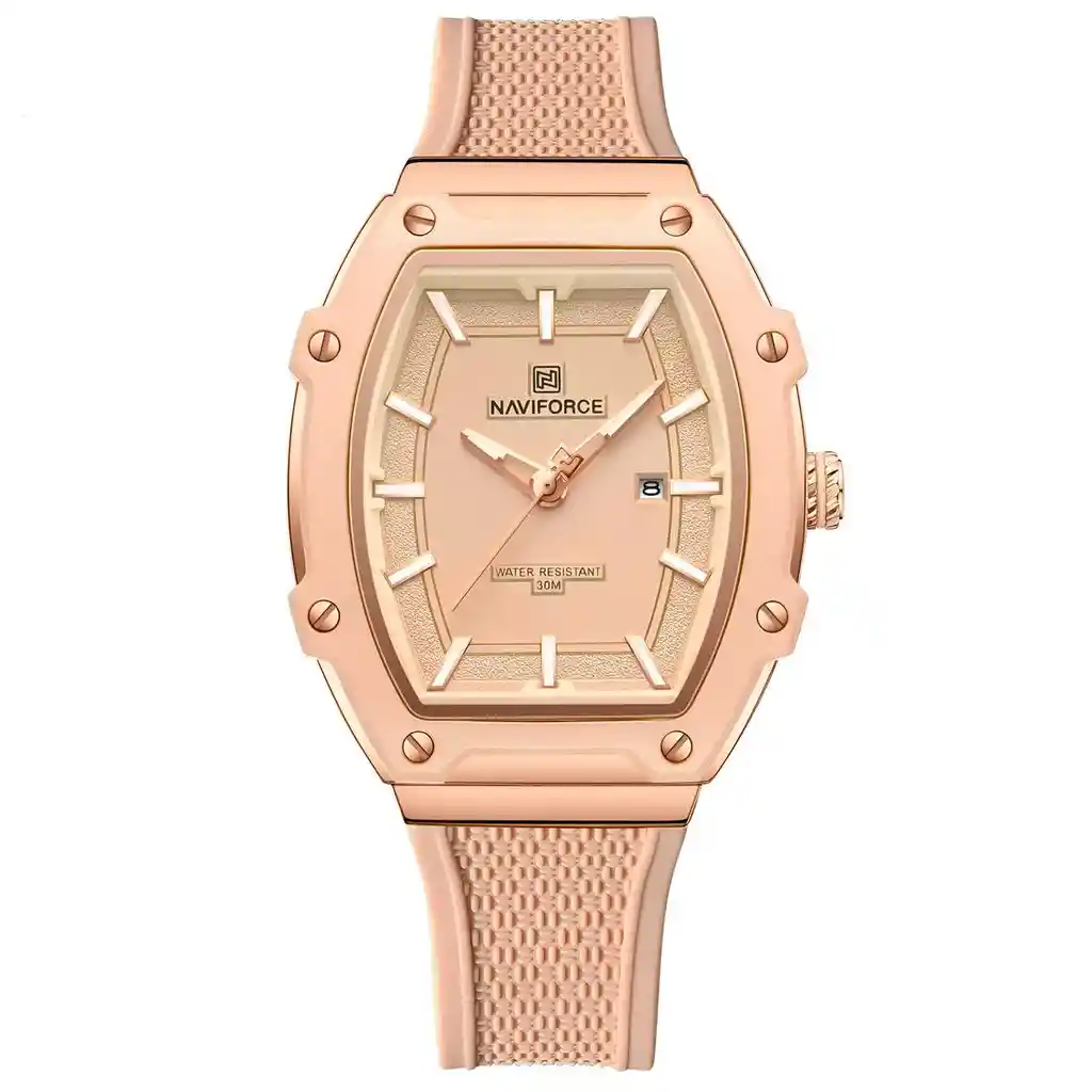 Descubre la elegancia y sofisticación de los relojes **Naviforce**, diseñados para quienes buscan estilo, calidad y funcionalidad en un solo accesorio. Con materiales de primera y un diseño innovador, este reloj no solo complementa tu look, sino que también resalta tu personalidad con un toque de lujo y distinción. Su correa elegante se adapta perfectamente a cualquier ocasión, permitiéndote lucir impecable en todo momento. Más que un simple reloj, **Naviforce** es sinónimo de prestigio y modernidad, ideal para quienes desean destacar con cada detalle. ¡Hazlo tuyo y eleva tu estilo al siguiente nivel! /// El reloj incluye su estuche original y tarjeta de garantía. /// Ficha Técnica Pantalla Análoga Resistencia al agua de 3ATM (solo exposición accidental al agua No ducha, No se puede sumergir, No usar en actividades acuáticas). Tipo de cierre: Hebilla Material de la caja: Aleación de zinc metal Grosor de esfera: 1.2 cm Ancho correa: 2.2 cm Diámetro: 3.6 cm Material de la correa banda: Goma Longitud de La correa: 25 cm ( Ajustable ) Peso neto: 57 g Términos de garantía: Para defectos de fábrica o solicitudes de retracto, es importante revisar el producto inmediatamente al recibirlo y antes de usarlo, ya que no aplicará garantía una vez utilizado. Se dispone de un máximo de 5 días para reportar defectos de fábrica, como piezas faltantes o rotas. En el caso de maquinaria, la garantía cubre tres meses para garantizar su correcto funcionamiento. Para efectuar una devolución, el producto debe ser devuelto en su empaque original, en buen estado, con todos los documentos y partes completas y sin daños.
