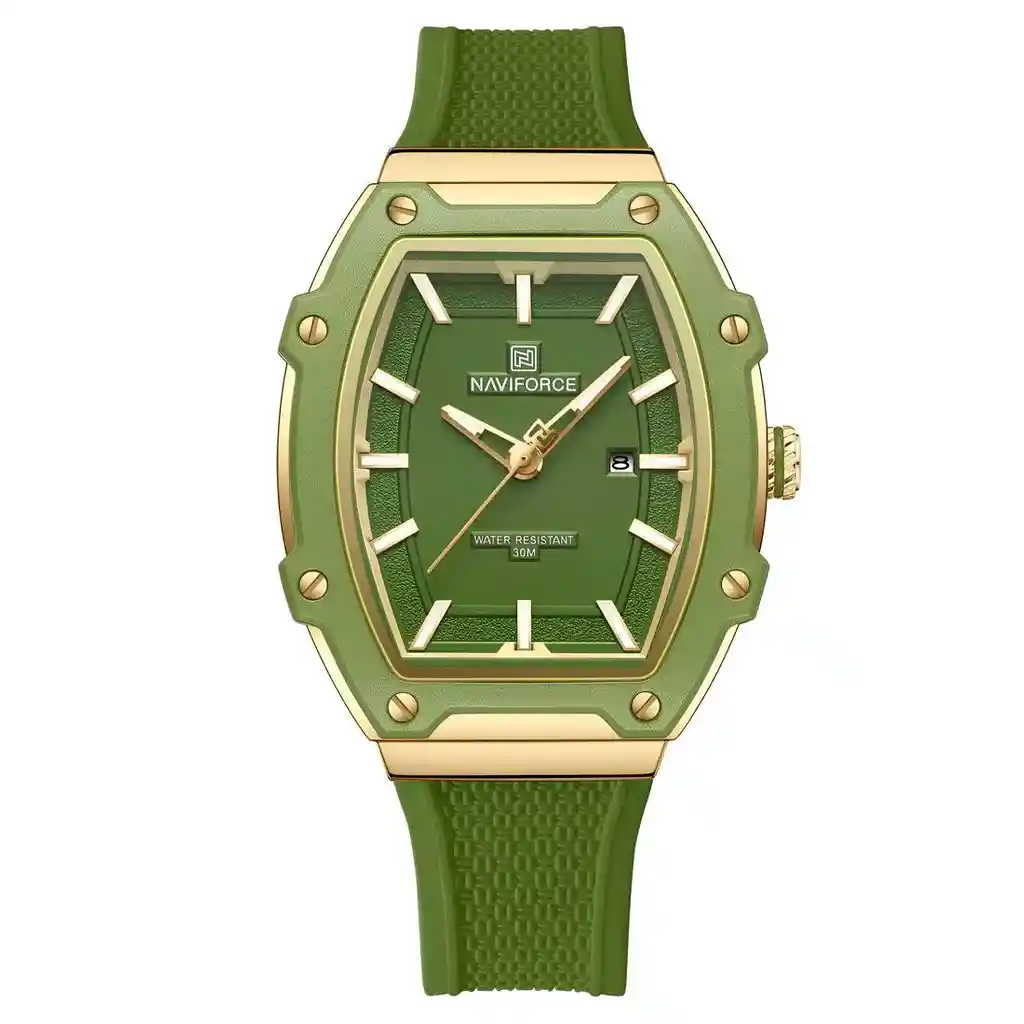 Descubre la elegancia y sofisticación de los relojes **Naviforce**, diseñados para quienes buscan estilo, calidad y funcionalidad en un solo accesorio. Con materiales de primera y un diseño innovador, este reloj no solo complementa tu look, sino que también resalta tu personalidad con un toque de lujo y distinción. Su correa elegante se adapta perfectamente a cualquier ocasión, permitiéndote lucir impecable en todo momento. Más que un simple reloj, **Naviforce** es sinónimo de prestigio y modernidad, ideal para quienes desean destacar con cada detalle. ¡Hazlo tuyo y eleva tu estilo al siguiente nivel! /// El reloj incluye su estuche original y tarjeta de garantía. /// Ficha Técnica Pantalla Análoga Resistencia al agua de 3ATM (solo exposición accidental al agua No ducha, No se puede sumergir, No usar en actividades acuáticas). Tipo de cierre: Hebilla Material de la caja: Aleación de zinc metal Grosor de esfera: 1.2 cm Ancho correa: 2.2 cm Diámetro: 3.6 cm Material de la correa banda: Goma Longitud de La correa: 25 cm ( Ajustable ) Peso neto: 57 g Términos de garantía: Para defectos de fábrica o solicitudes de retracto, es importante revisar el producto inmediatamente al recibirlo y antes de usarlo, ya que no aplicará garantía una vez utilizado. Se dispone de un máximo de 5 días para reportar defectos de fábrica, como piezas faltantes o rotas. En el caso de maquinaria, la garantía cubre tres meses para garantizar su correcto funcionamiento. Para efectuar una devolución, el producto debe ser devuelto en su empaque original, en buen estado, con todos los documentos y partes completas y sin daños.