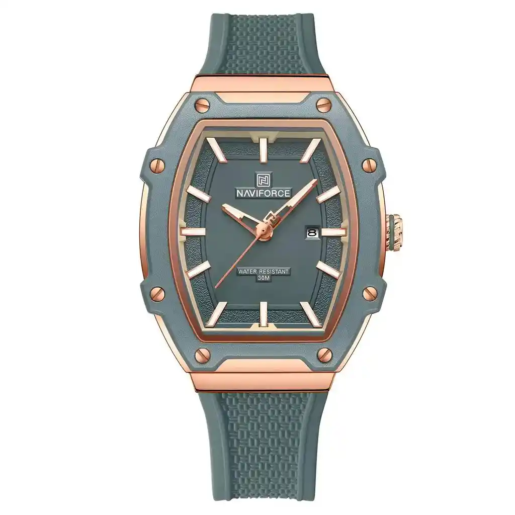 Descubre la elegancia y sofisticación de los relojes **Naviforce**, diseñados para quienes buscan estilo, calidad y funcionalidad en un solo accesorio. Con materiales de primera y un diseño innovador, este reloj no solo complementa tu look, sino que también resalta tu personalidad con un toque de lujo y distinción. Su correa elegante se adapta perfectamente a cualquier ocasión, permitiéndote lucir impecable en todo momento. Más que un simple reloj, **Naviforce** es sinónimo de prestigio y modernidad, ideal para quienes desean destacar con cada detalle. ¡Hazlo tuyo y eleva tu estilo al siguiente nivel! /// El reloj incluye su estuche original y tarjeta de garantía. /// Ficha Técnica Pantalla Análoga Resistencia al agua de 3ATM (solo exposición accidental al agua No ducha, No se puede sumergir, No usar en actividades acuáticas). Tipo de cierre: Hebilla Material de la caja: Aleación de zinc metal Grosor de esfera: 1.2 cm Ancho correa: 2.2 cm Diámetro: 3.6 cm Material de la correa banda: Goma Longitud de La correa: 25 cm ( Ajustable ) Peso neto: 57 g Términos de garantía: Para defectos de fábrica o solicitudes de retracto, es importante revisar el producto inmediatamente al recibirlo y antes de usarlo, ya que no aplicará garantía una vez utilizado. Se dispone de un máximo de 5 días para reportar defectos de fábrica, como piezas faltantes o rotas. En el caso de maquinaria, la garantía cubre tres meses para garantizar su correcto funcionamiento. Para efectuar una devolución, el producto debe ser devuelto en su empaque original, en buen estado, con todos los documentos y partes completas y sin daños.