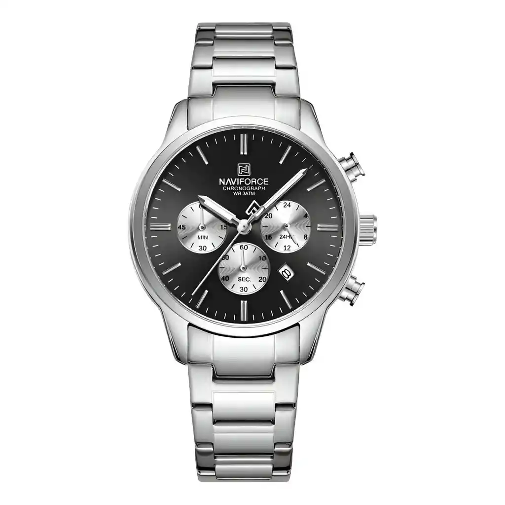 Los mejores relojes te los trae la marca Naviforce con sus sorprendentes estilos que definitivamente te enamoraran. Todos sus diseños son inspirados en la comodidad y satisfacción del cliente, ofreciéndote relojes con materiales de la más alta calidad, estilos innovadores y de cualidades inigualables. El reloj Naviforce es un accesorio indispensable que cumplirá con todas las expectativas que buscas en un reloj, uniendo lo mejor de la moda y destacando tu belleza a la hora de portarlo. /// El reloj incluye su estuche original y tarjeta de garantía. /// Ficha Técnica Pantalla Análoga Resistencia al agua de 3ATM (solo exposición accidental al agua No ducha, No se puede sumergir, No usar en actividades acuáticas). Tipo de cierre: Hebilla Material de la caja: Aleación de zinc metal Ancho de la correa: 2 cm Grosor de la caja: 1.2 cm Diámetro: 4.2 cm Material de la correa banda: Acero Inoxidable Longitud de La correa: 26 cm Peso neto: 120 gr Términos de garantía:_Para defectos de fábrica o retractos: _Por favor revise el producto apenas lo reciba y antes de usarlo. No aplican ley de retracto o defectos de fábrica luego de usar el producto. Se manejan máximo 5 días para reportar defectos de fábrica (por ejemplo, piezas faltantes, rotas, etc). En cuanto a maquinaria se da tres meses de garantía, es decir el buen funcionamiento del producto. Para hacer efectiva la devolución el producto debe devolverse con el empaque original, el cual debe estar en buen estado, incluir todos los documentos y las partes completas y sin daños.