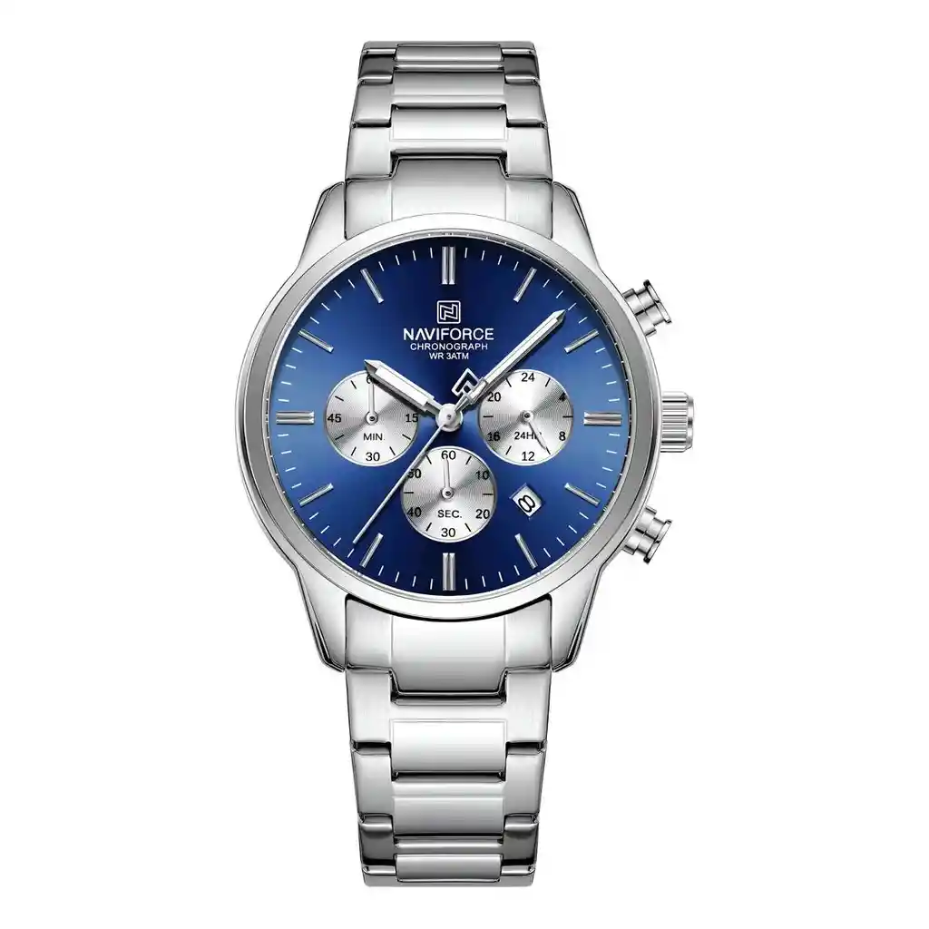 Los mejores relojes te los trae la marca Naviforce con sus sorprendentes estilos que definitivamente te enamoraran. Todos sus diseños son inspirados en la comodidad y satisfacción del cliente, ofreciéndote relojes con materiales de la más alta calidad, estilos innovadores y de cualidades inigualables. El reloj Naviforce es un accesorio indispensable que cumplirá con todas las expectativas que buscas en un reloj, uniendo lo mejor de la moda y destacando tu belleza a la hora de portarlo. /// El reloj incluye su estuche original y tarjeta de garantía. /// Ficha Técnica Pantalla Análoga Resistencia al agua de 3ATM (solo exposición accidental al agua No ducha, No se puede sumergir, No usar en actividades acuáticas). Tipo de cierre: Hebilla Material de la caja: Aleación de zinc metal Ancho de la correa: 2 cm Grosor de la caja: 1.2 cm Diámetro: 4.2 cm Material de la correa banda: Acero Inoxidable Longitud de La correa: 26 cm Peso neto: 120 gr Términos de garantía:_Para defectos de fábrica o retractos: _Por favor revise el producto apenas lo reciba y antes de usarlo. No aplican ley de retracto o defectos de fábrica luego de usar el producto. Se manejan máximo 5 días para reportar defectos de fábrica (por ejemplo, piezas faltantes, rotas, etc). En cuanto a maquinaria se da tres meses de garantía, es decir el buen funcionamiento del producto. Para hacer efectiva la devolución el producto debe devolverse con el empaque original, el cual debe estar en buen estado, incluir todos los documentos y las partes completas y sin daños.