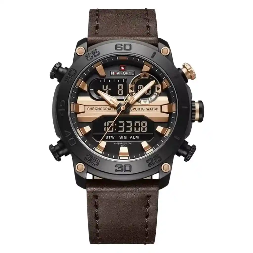Descubre la elegancia y sofisticación de los relojes **Naviforce**, diseñados para quienes buscan estilo, calidad y funcionalidad en un solo accesorio. Con materiales de primera y un diseño innovador, este reloj no solo complementa tu look, sino que también resalta tu personalidad con un toque de lujo y distinción. Su correa elegante se adapta perfectamente a cualquier ocasión, permitiéndote lucir impecable en todo momento. Más que un simple reloj, **Naviforce** es sinónimo de prestigio y modernidad, ideal para quienes desean destacar con cada detalle. ¡Hazlo tuyo y eleva tu estilo al siguiente nivel! /// El reloj incluye su estuche original y tarjeta de garantía. /// Ficha Técnica Pantalla Análoga Resistencia al agua de 3ATM (solo exposición accidental al agua No ducha, No se puede sumergir, No usar en actividades acuáticas). Tipo de cierre: Hebilla Material de la caja: Aleacion de Zinc Grosor de esfera: 1.6 cm Ancho correa: 2.4 cm Diámetro: 4.5 cm Material de la correa banda: Cuero Longitud de La correa: 26.5 cm ( Ajustable ) Peso neto: 104 gr Términos de garantía: Para defectos de fábrica o solicitudes de retracto, es importante revisar el producto inmediatamente al recibirlo y antes de usarlo, ya que no aplicará garantía una vez utilizado. Se dispone de un máximo de 5 días para reportar defectos de fábrica, como piezas faltantes o rotas. En el caso de maquinaria, la garantía cubre tres meses para garantizar su correcto funcionamiento. Para efectuar una devolución, el producto debe ser devuelto en su empaque original, en buen estado, con todos los documentos y partes completas y sin daños.