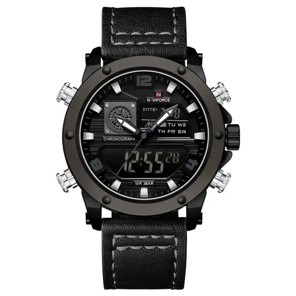 Descubre la elegancia y sofisticación de los relojes **Naviforce**, diseñados para quienes buscan estilo, calidad y funcionalidad en un solo accesorio. Con materiales de primera y un diseño innovador, este reloj no solo complementa tu look, sino que también resalta tu personalidad con un toque de lujo y distinción. Su correa elegante se adapta perfectamente a cualquier ocasión, permitiéndote lucir impecable en todo momento. Más que un simple reloj, **Naviforce** es sinónimo de prestigio y modernidad, ideal para quienes desean destacar con cada detalle. ¡Hazlo tuyo y eleva tu estilo al siguiente nivel! /// El reloj incluye su estuche original y tarjeta de garantía. /// Ficha Técnica Pantalla Análoga Resistencia al agua de 3ATM (solo exposición accidental al agua No ducha, No se puede sumergir, No usar en actividades acuáticas). Tipo de cierre: Hebilla Material de la caja: Aleación de zinc metal Grosor de esfera: 1.6 cm Ancho correa: 2.4 cm Diámetro: 4.6 cm Material de la correa banda: Cuero Longitud de La correa: 26 cm ( Ajustable ) Peso neto: 107 g Términos de garantía: Para defectos de fábrica o solicitudes de retracto, es importante revisar el producto inmediatamente al recibirlo y antes de usarlo, ya que no aplicará garantía una vez utilizado. Se dispone de un máximo de 5 días para reportar defectos de fábrica, como piezas faltantes o rotas. En el caso de maquinaria, la garantía cubre tres meses para garantizar su correcto funcionamiento. Para efectuar una devolución, el producto debe ser devuelto en su empaque original, en buen estado, con todos los documentos y partes completas y sin daños.