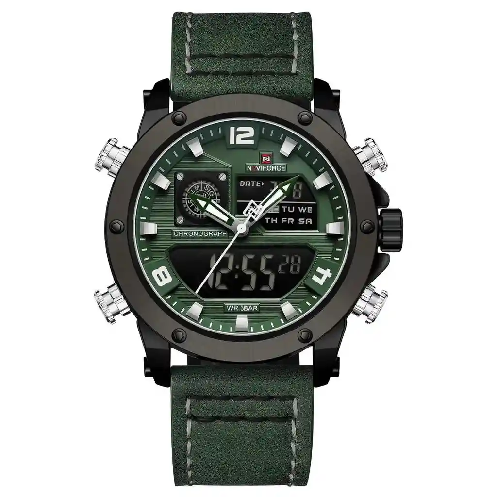 Descubre la elegancia y sofisticación de los relojes **Naviforce**, diseñados para quienes buscan estilo, calidad y funcionalidad en un solo accesorio. Con materiales de primera y un diseño innovador, este reloj no solo complementa tu look, sino que también resalta tu personalidad con un toque de lujo y distinción. Su correa elegante se adapta perfectamente a cualquier ocasión, permitiéndote lucir impecable en todo momento. Más que un simple reloj, **Naviforce** es sinónimo de prestigio y modernidad, ideal para quienes desean destacar con cada detalle. ¡Hazlo tuyo y eleva tu estilo al siguiente nivel! /// El reloj incluye su estuche original y tarjeta de garantía. /// Ficha Técnica Pantalla Análoga Resistencia al agua de 3ATM (solo exposición accidental al agua No ducha, No se puede sumergir, No usar en actividades acuáticas). Tipo de cierre: Hebilla Material de la caja: Aleación de zinc metal Grosor de esfera: 1.6 cm Ancho correa: 2.4 cm Diámetro: 4.6 cm Material de la correa banda: Cuero Longitud de La correa: 26 cm ( Ajustable ) Peso neto: 107 g Términos de garantía: Para defectos de fábrica o solicitudes de retracto, es importante revisar el producto inmediatamente al recibirlo y antes de usarlo, ya que no aplicará garantía una vez utilizado. Se dispone de un máximo de 5 días para reportar defectos de fábrica, como piezas faltantes o rotas. En el caso de maquinaria, la garantía cubre tres meses para garantizar su correcto funcionamiento. Para efectuar una devolución, el producto debe ser devuelto en su empaque original, en buen estado, con todos los documentos y partes completas y sin daños.