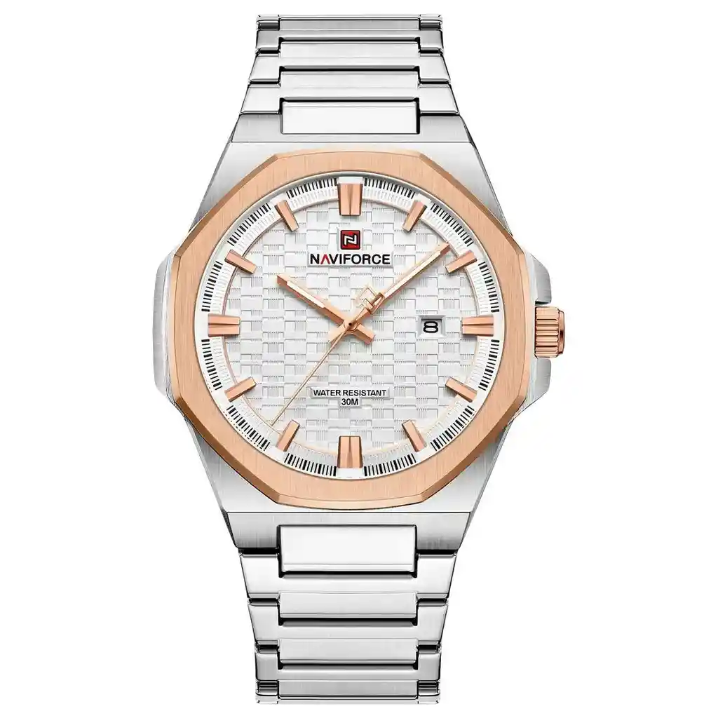 Los mejores relojes te los trae la marca Naviforce con sus sorprendentes estilos que definitivamente te enamoraran. Todos sus diseños son inspirados en la comodidad y satisfacción del cliente, ofreciéndote relojes con materiales de la más alta calidad, estilos innovadores y de cualidades inigualables. El reloj Naviforce es un accesorio indispensable que cumplirá con todas las expectativas que buscas en un reloj, uniendo lo mejor de la moda y destacando tu belleza a la hora de portarlo. /// El reloj incluye su estuche original y tarjeta de garantía. /// Ficha Técnica Pantalla Análoga Resistencia al agua de 3ATM (solo exposición accidental al agua No ducha, No se puede sumergir, No usar en actividades acuáticas). Tipo de cierre: Hebilla Material de la caja: Aleación de zinc metal Ancho de la correa: 1.6 cm Grosor de la caja: 1.2 cm Diámetro: 4.2 cm Material de la correa banda: Acero Inoxidable Longitud de La correa: 25 cm Peso neto: 148 gr Términos de garantía:_Para defectos de fábrica o retractos: _Por favor revise el producto apenas lo reciba y antes de usarlo. No aplican ley de retracto o defectos de fábrica luego de usar el producto. Se manejan máximo 5 días para reportar defectos de fábrica (por ejemplo, piezas faltantes, rotas, etc). En cuanto a maquinaria se da tres meses de garantía, es decir el buen funcionamiento del producto. Para hacer efectiva la devolución el producto debe devolverse con el empaque original, el cual debe estar en buen estado, incluir todos los documentos y las partes completas y sin daños.