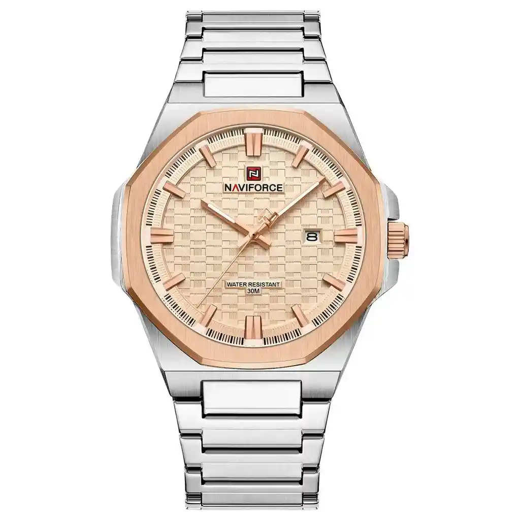Los mejores relojes te los trae la marca Naviforce con sus sorprendentes estilos que definitivamente te enamoraran. Todos sus diseños son inspirados en la comodidad y satisfacción del cliente, ofreciéndote relojes con materiales de la más alta calidad, estilos innovadores y de cualidades inigualables. El reloj Naviforce es un accesorio indispensable que cumplirá con todas las expectativas que buscas en un reloj, uniendo lo mejor de la moda y destacando tu belleza a la hora de portarlo. /// El reloj incluye su estuche original y tarjeta de garantía. /// Ficha Técnica Pantalla Análoga Resistencia al agua de 3ATM (solo exposición accidental al agua No ducha, No se puede sumergir, No usar en actividades acuáticas). Tipo de cierre: Hebilla Material de la caja: Aleación de zinc metal Ancho de la correa: 1.6 cm Grosor de la caja: 1.2 cm Diámetro: 4.2 cm Material de la correa banda: Acero Inoxidable Longitud de La correa: 25 cm Peso neto: 148 gr Términos de garantía:_Para defectos de fábrica o retractos: _Por favor revise el producto apenas lo reciba y antes de usarlo. No aplican ley de retracto o defectos de fábrica luego de usar el producto. Se manejan máximo 5 días para reportar defectos de fábrica (por ejemplo, piezas faltantes, rotas, etc). En cuanto a maquinaria se da tres meses de garantía, es decir el buen funcionamiento del producto. Para hacer efectiva la devolución el producto debe devolverse con el empaque original, el cual debe estar en buen estado, incluir todos los documentos y las partes completas y sin daños.