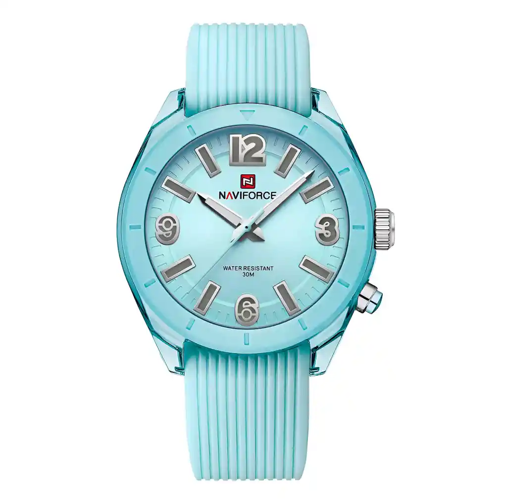 Descubre la elegancia y sofisticación de los relojes **Naviforce**, diseñados para quienes buscan estilo, calidad y funcionalidad en un solo accesorio. Con materiales de primera y un diseño innovador, este reloj no solo complementa tu look, sino que también resalta tu personalidad con un toque de lujo y distinción. Su correa elegante se adapta perfectamente a cualquier ocasión, permitiéndote lucir impecable en todo momento. Más que un simple reloj, **Naviforce** es sinónimo de prestigio y modernidad, ideal para quienes desean destacar con cada detalle. ¡Hazlo tuyo y eleva tu estilo al siguiente nivel! /// El reloj incluye su estuche original y tarjeta de garantía. /// Ficha Técnica Pantalla Análoga Resistencia al agua de 3ATM (solo exposición accidental al agua No ducha, No se puede sumergir, No usar en actividades acuáticas). Tipo de cierre: Hebilla Material de la caja: ABS Grosor de esfera: 1.2 cm Ancho correa: 1.8 cm Diámetro: 3.7 cm Material de la correa banda: Goma Longitud de La correa: 24 cm ( Ajustable ) Peso neto: 37g Términos de garantía: Para defectos de fábrica o solicitudes de retracto, es importante revisar el producto inmediatamente al recibirlo y antes de usarlo, ya que no aplicará garantía una vez utilizado. Se dispone de un máximo de 5 días para reportar defectos de fábrica, como piezas faltantes o rotas. En el caso de maquinaria, la garantía cubre tres meses para garantizar su correcto funcionamiento. Para efectuar una devolución, el producto debe ser devuelto en su empaque original, en buen estado, con todos los documentos y partes completas y sin daños.