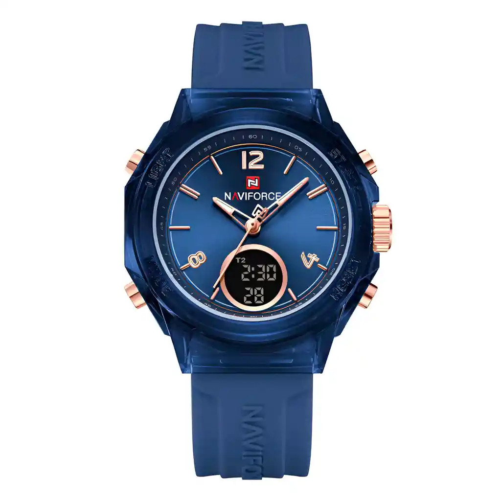 Descubre la elegancia y sofisticación de los relojes **Naviforce**, diseñados para quienes buscan estilo, calidad y funcionalidad en un solo accesorio. Con materiales de primera y un diseño innovador, este reloj no solo complementa tu look, sino que también resalta tu personalidad con un toque de lujo y distinción. Su correa elegante se adapta perfectamente a cualquier ocasión, permitiéndote lucir impecable en todo momento. Más que un simple reloj, **Naviforce** es sinónimo de prestigio y modernidad, ideal para quienes desean destacar con cada detalle. ¡Hazlo tuyo y eleva tu estilo al siguiente nivel! /// El reloj incluye su estuche original y tarjeta de garantía. /// Ficha Técnica Pantalla Análoga Resistencia al agua de 3ATM (solo exposición accidental al agua No ducha, No se puede sumergir, No usar en actividades acuáticas). Tipo de cierre: Hebilla Material de la caja: ABS Grosor de esfera: 1.5 cm Ancho correa: 1.8 cm Diámetro: 3.5 cm Material de la correa banda: Goma Longitud de La correa: 23 cm ( Ajustable ) Peso neto: 42g Términos de garantía: Para defectos de fábrica o solicitudes de retracto, es importante revisar el producto inmediatamente al recibirlo y antes de usarlo, ya que no aplicará garantía una vez utilizado. Se dispone de un máximo de 5 días para reportar defectos de fábrica, como piezas faltantes o rotas. En el caso de maquinaria, la garantía cubre tres meses para garantizar su correcto funcionamiento. Para efectuar una devolución, el producto debe ser devuelto en su empaque original, en buen estado, con todos los documentos y partes completas y sin daños.