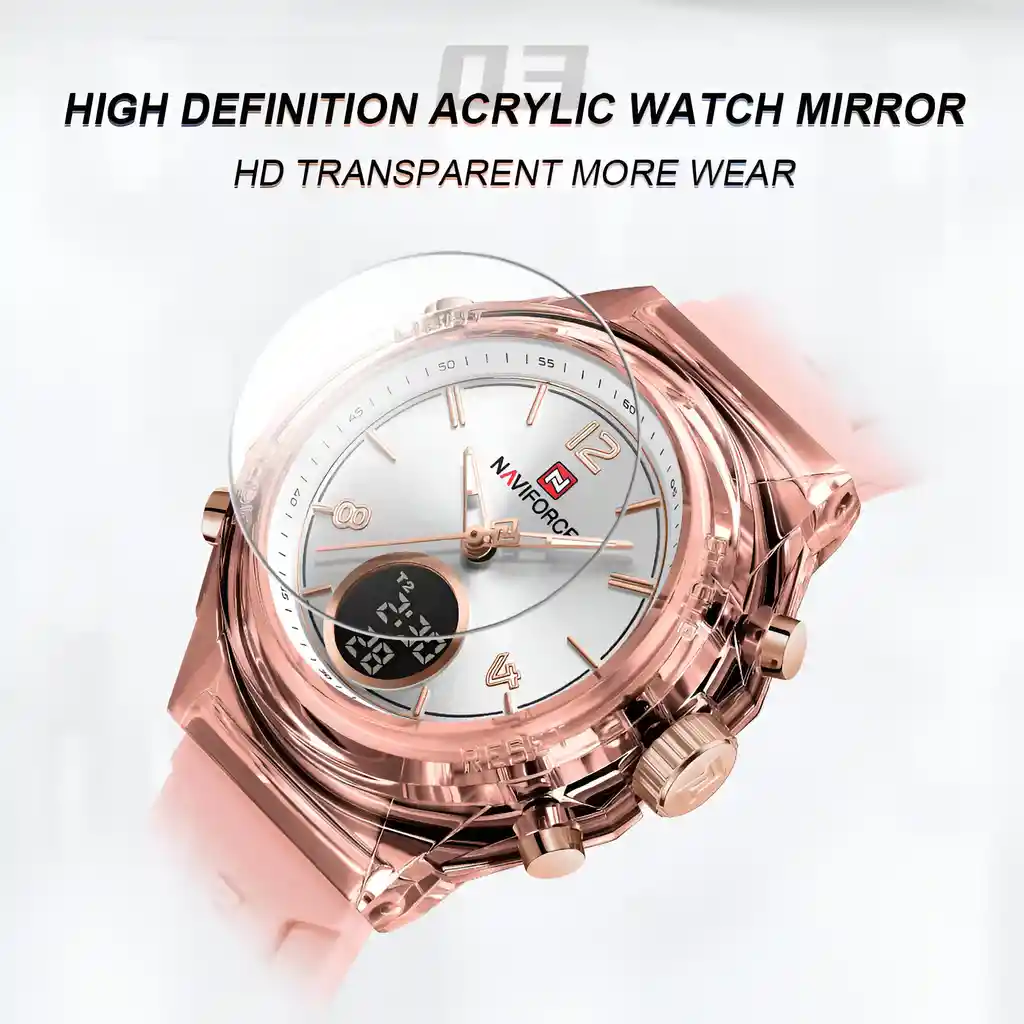 Descubre la elegancia y sofisticación de los relojes **Naviforce**, diseñados para quienes buscan estilo, calidad y funcionalidad en un solo accesorio. Con materiales de primera y un diseño innovador, este reloj no solo complementa tu look, sino que también resalta tu personalidad con un toque de lujo y distinción. Su correa elegante se adapta perfectamente a cualquier ocasión, permitiéndote lucir impecable en todo momento. Más que un simple reloj, **Naviforce** es sinónimo de prestigio y modernidad, ideal para quienes desean destacar con cada detalle. ¡Hazlo tuyo y eleva tu estilo al siguiente nivel! /// El reloj incluye su estuche original y tarjeta de garantía. /// Ficha Técnica Pantalla Análoga Resistencia al agua de 3ATM (solo exposición accidental al agua No ducha, No se puede sumergir, No usar en actividades acuáticas). Tipo de cierre: Hebilla Material de la caja: ABS Grosor de esfera: 1.5 cm Ancho correa: 1.8 cm Diámetro: 3.5 cm Material de la correa banda: Goma Longitud de La correa: 23 cm ( Ajustable ) Peso neto: 42g Términos de garantía: Para defectos de fábrica o solicitudes de retracto, es importante revisar el producto inmediatamente al recibirlo y antes de usarlo, ya que no aplicará garantía una vez utilizado. Se dispone de un máximo de 5 días para reportar defectos de fábrica, como piezas faltantes o rotas. En el caso de maquinaria, la garantía cubre tres meses para garantizar su correcto funcionamiento. Para efectuar una devolución, el producto debe ser devuelto en su empaque original, en buen estado, con todos los documentos y partes completas y sin daños.